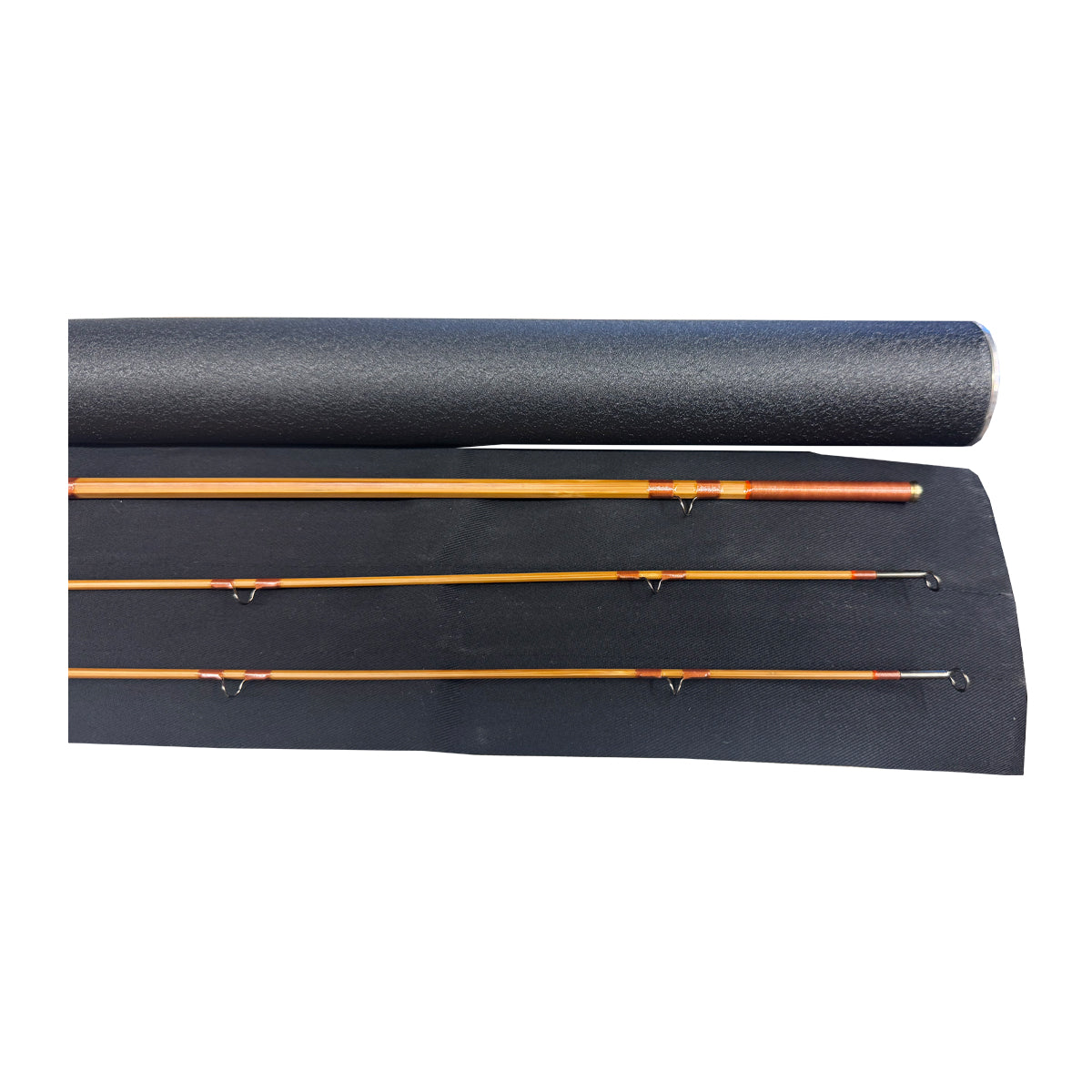 "The Phoenix short series of rods are unique. The bamboo from which these rods are built came from the ashes of a devastating fire in 2017 that destroyed a bamboo rod building facility in Twin Bridges, Montana. After the fire, the few bamboo culms which made up these rods were discarded. These culms were later 'rescued'. In 2024 a prototype rod was built to check the integrity of the cane. Having found that the prototype not only was a sweetheart to cast, the warm amber color along with the occasional 'scorched' darkened look was rather attractive. This formed the beginning of the Phoenix program. With nearly twenty years of experience in building some of the finest bamboo rods in the world, we are proud to pass on the beauty, functionality and history of the Phoenix rod to you!