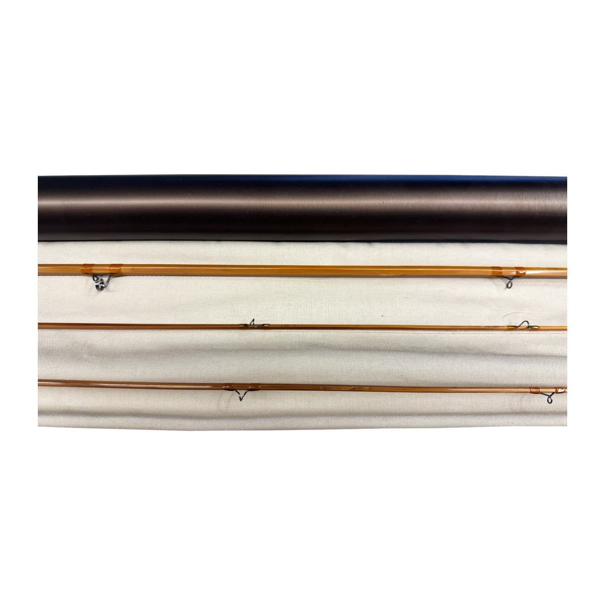 For sale here is a Mario Wojnicki six-sided hollow-built bamboo rod 7'5 (225cm) 2/2 for a DT4 Line. The rod was made in 2008 and is in mint/unfished condition. Translucent gold silk wraps. Guides are bright chrome. All hardware and ferrules are blued. Wood spacer is cypress. Dual ring reel seat. Ferrules are short super-Z. EC Powell-style wells grip. In Mario's words, "If there were one classic bamboo fly rod to have, this would be the choice. This is a rod that can handle most of trout fishing situations. Especially fine with a dry fly. Medium fast action." The rod weighs 3 oz. Comes with original bag and tube.