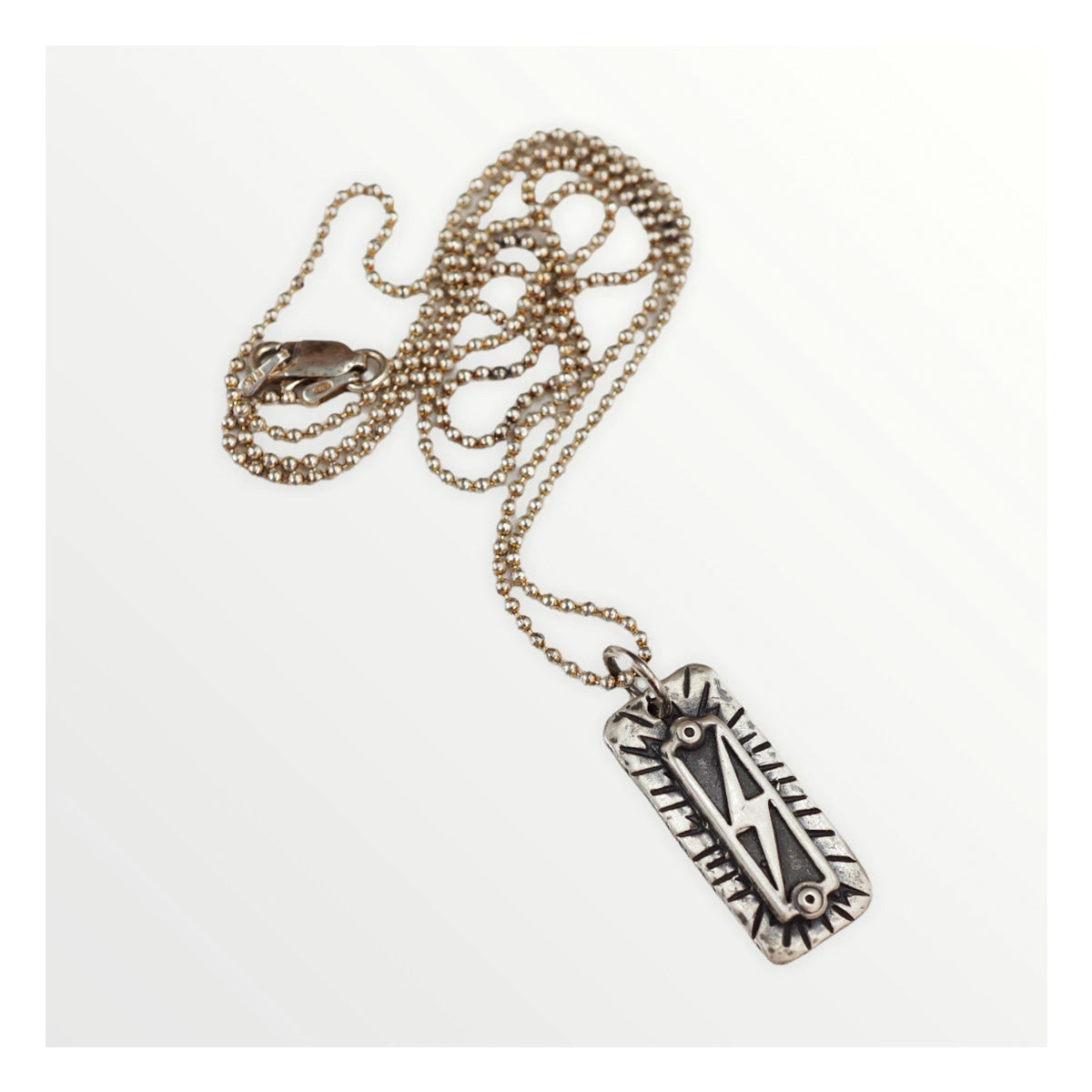 A symbol of illumination; leaving a lasting impression when experienced in the wild. Our latest Flash badge design with our lightning strike pattern on silver pendant.