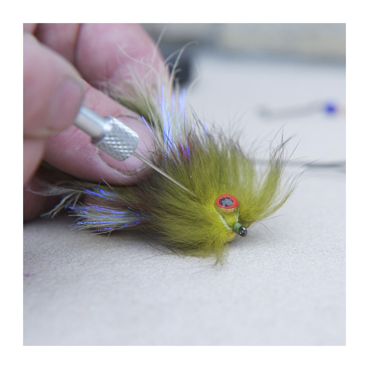 - Custom handle shape so that it rolls in a circular motion and is less likely to fall off your tying table.