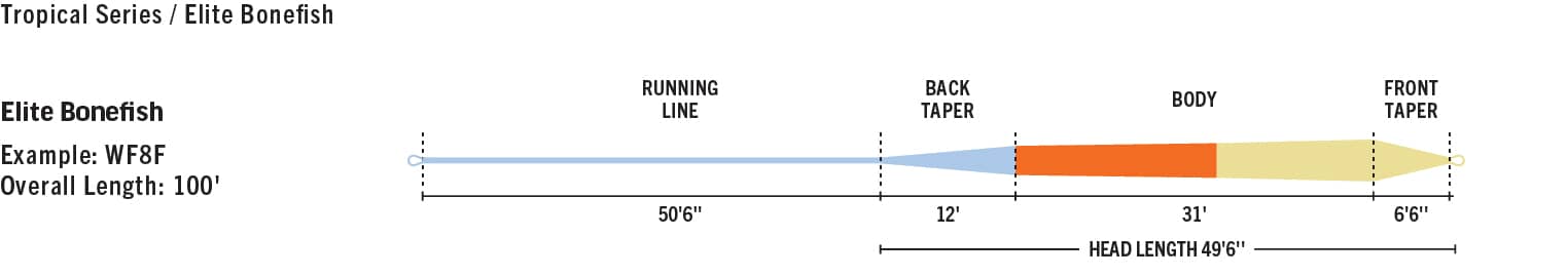 RIO’s Elite Bonefish line has a long head and back taper to smooth out the loop, and to make long efficient casts, while the mid length front taper produces great turnover and easy presentation of typical bonefish flies. Each line is built on RIO’s low-memory DirectCore that is extremely easy to anneal (stretch) and lies perfectly straight on the water, yet retains the stiffness needed to cast in hot conditions. In addition, this line is built with SlickCast, creating the slickest, most durable coating on the market—producing the least amount of friction ever measured in a fly line.