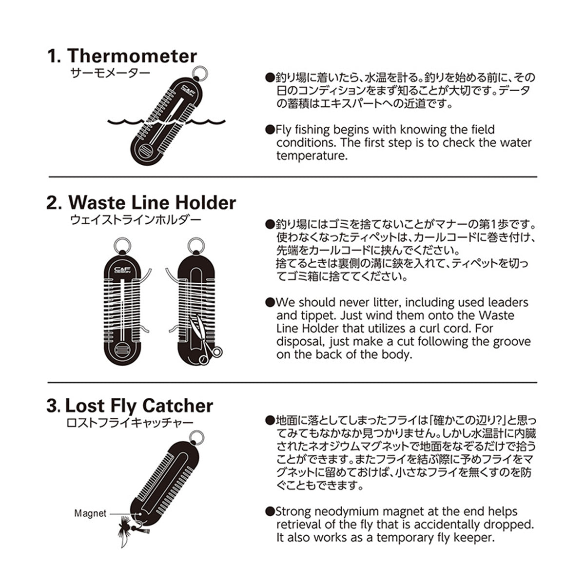 - Measure the water temperature. Wind up unnecessary leader , tippet. Look for the dropped fly. It is an excellent product that combines three functions necessary in the field.
