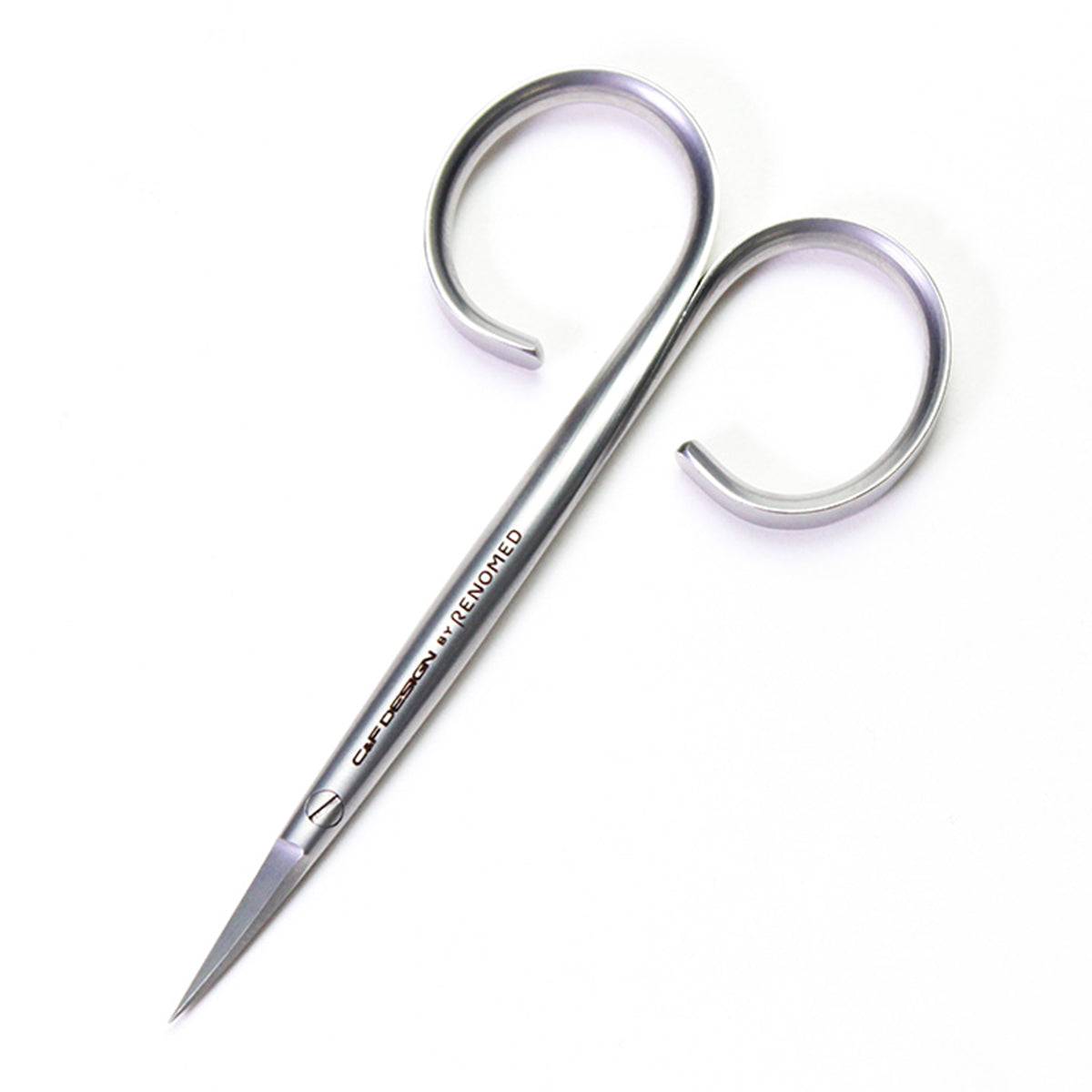 C&F Design Tying Scissors Curved are specifically designed for fly tying with a gently curved tip. The scissors are well suited for Japanese fly tying techniques, due to their ability to shape delicate animal hair. Despite its delicate look, the scissors offer long-term sharpness. This product is made of stainless steel and measures 90mm/3.54inch. Exercise caution when handling the very sharp tip, and keep away from children.