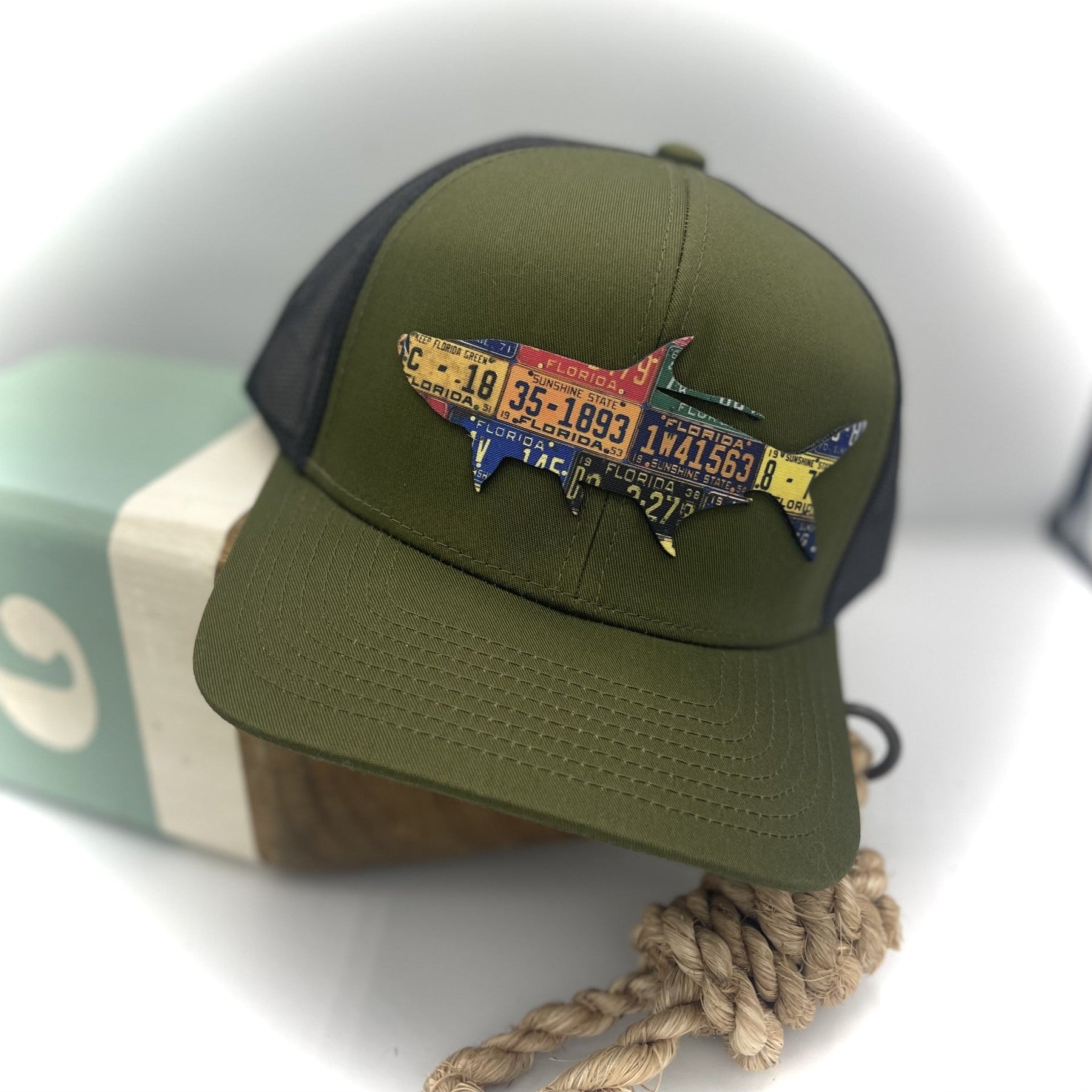 This hat is printed on a variety of Richardson and Pacific snap-back mesh hats and comfort foamies to fit your individual needs. These feature a made-in-USA leather patch with colorful antique Florida license plates on the brow! Super comfortable for those hot days on the water (passes the sweat test) or looks stylish lounging around with your favorite beverage in hand.