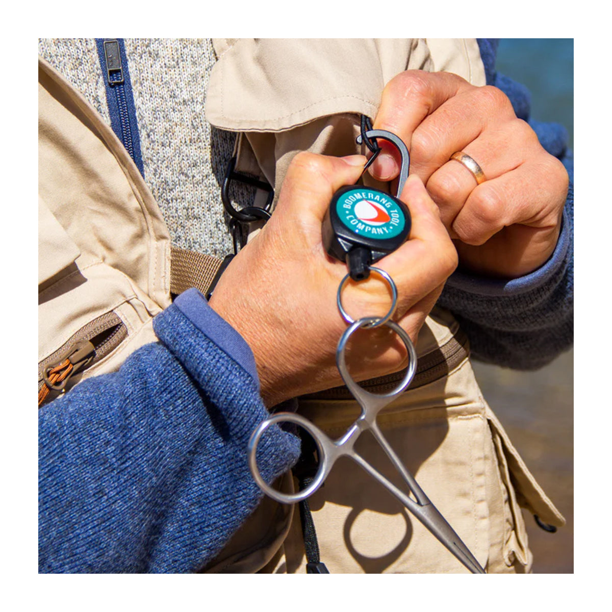 The Boomerang Mid Size Fishing Zinger with Carabiner has a tough molded polycarbonate case which makes this a very strong, yet lightweight zinger to carry. Attach your fishing tools to the strong retractable cord made with DuPont™ Kevlar® fiber, durable enough to withstand the elements. Grab your fishing tool and let it go, the built-in tether retracts back into place until you need it again, no more digging through your pockets or tackle box. With a Boomerang Tool Company Fishing Zinger your fishing pliers, landing net or other fishing tools will be always handy and never lost.