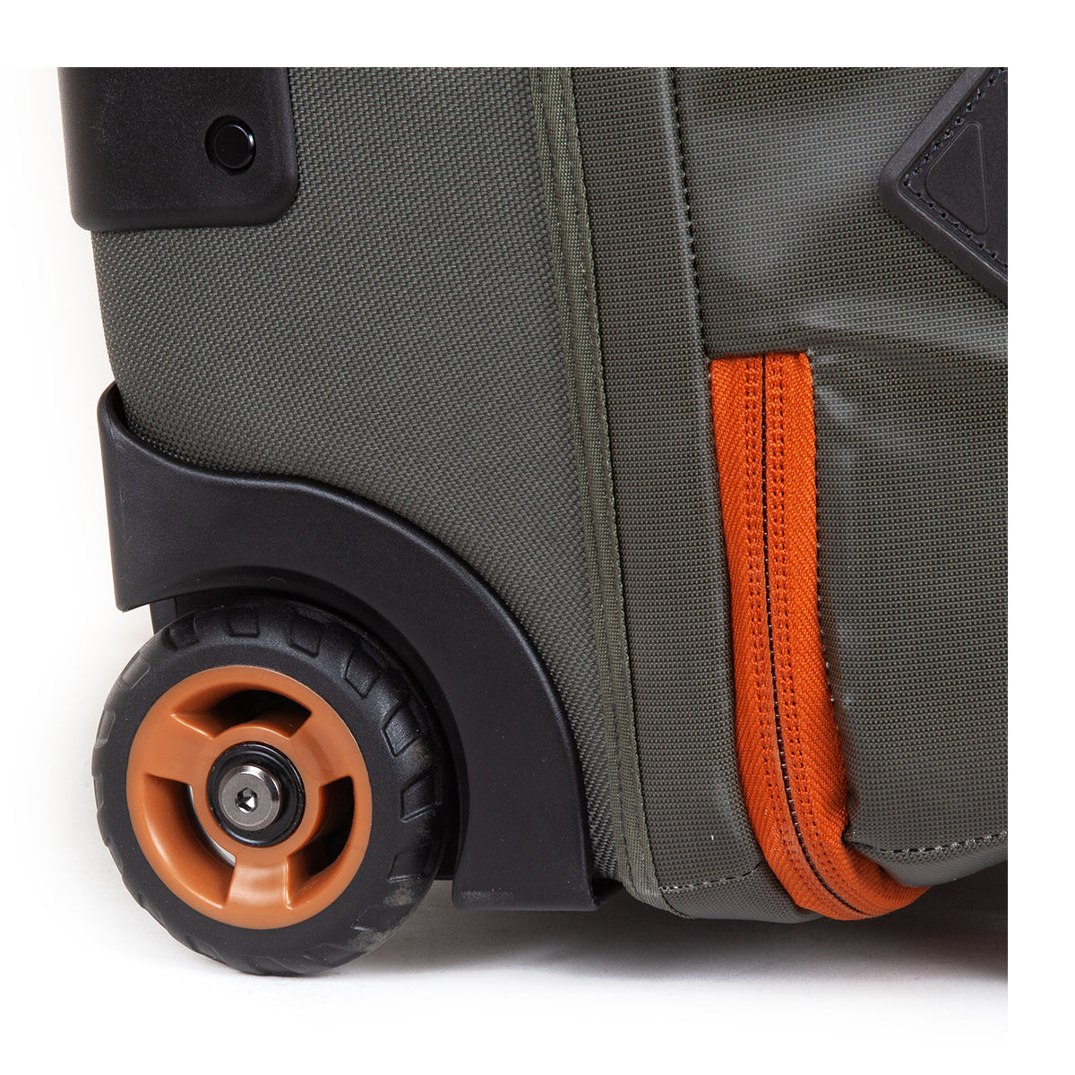 Discover the Stormshadow Rolling Carry-On - a versatile travel companion created for both wilderness adventures and urban getaways. Effortlessly navigate airports with essentials like your passport, clothes, and outdoor gear. Exterior pockets aid in organization on the go, and convenient external tie-down points make carrying fly rods a breeze. Crafted from durable TPU-coated recycled fabric, this highly weather-resistant carryon ensures your gear will arrive in the shape you packed it in. Ideal for overhead compartments, it combines practicality with eco-friendly design for a seamless travel experience.
