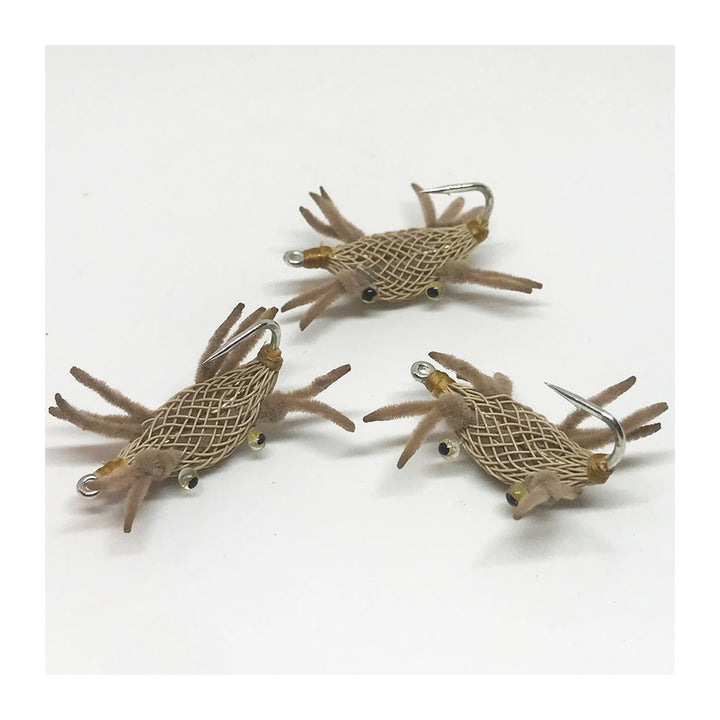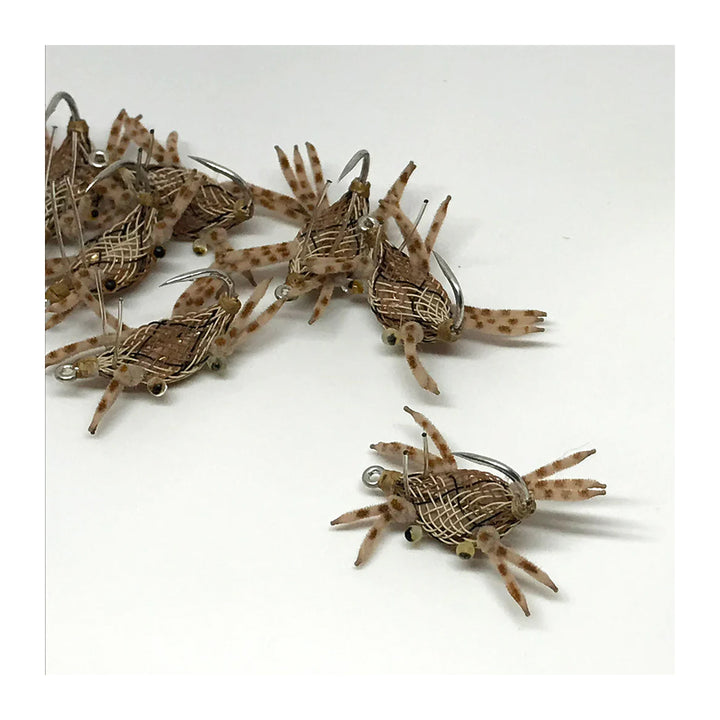 We have put together a starter assortment of popular colors and sizes of Alphlexo Crab consisting of 11-crabs in a mix of tan, clear, clear-with-hotspot, mottled tan and olive crabs in #2 and #6 sizes.