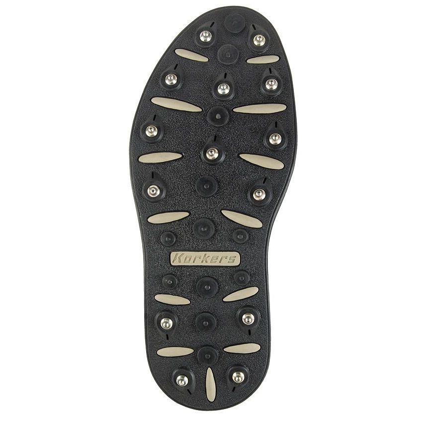 Durable push-through carbide spikes placed under toe, heel and ball of foot.