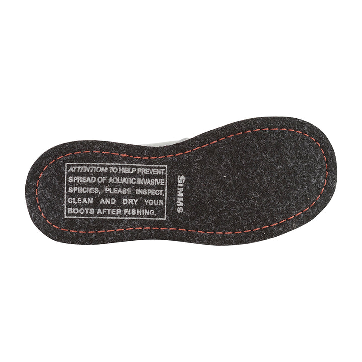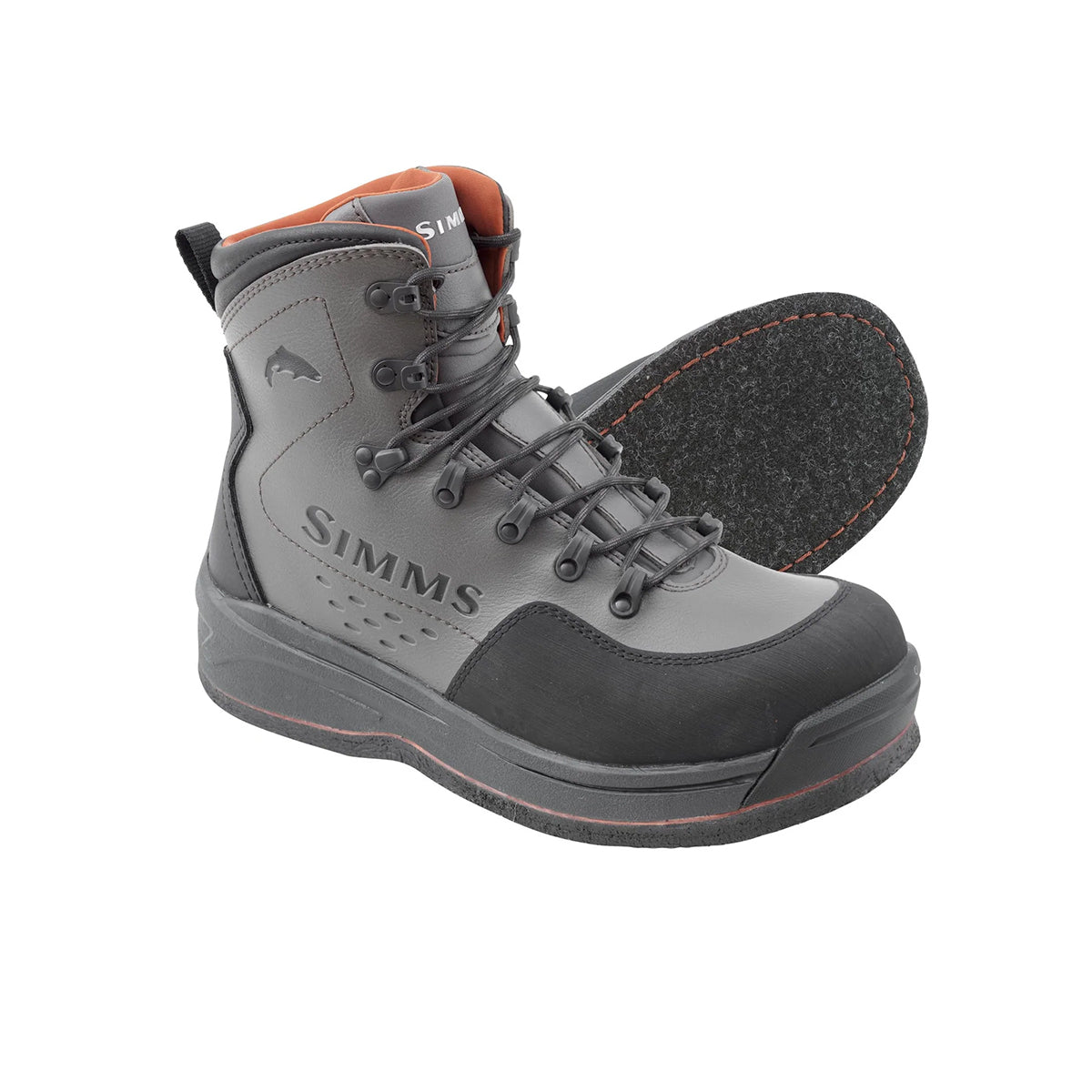 Simms Freestone Boot w/Felt soles, Navigating strong currents and slippery rock river beds is part of the experience. Our Freestone Wading Boot has a proven record of durability and traction in rocky rivers around the world. It provides the support underfoot and at the ankle for negotiating slick, unseen river bottoms. The synthetic uppers take the abuse of brush, rock and water in stride, while a cushioned midsole and partial neoprene lining provide all-day cushioning and warmth.