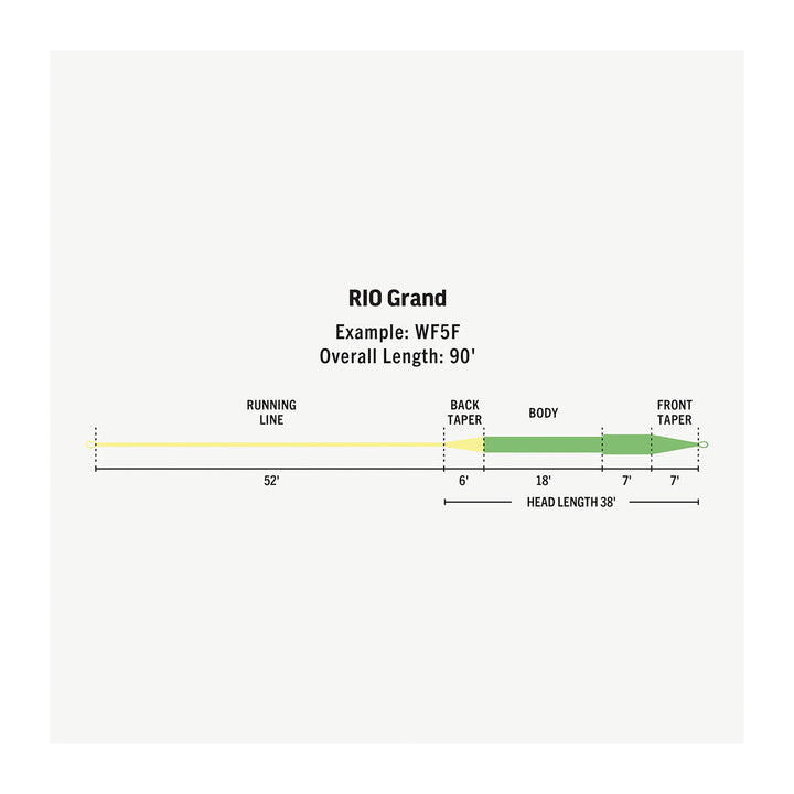The RIO Grand is a full line size heavier than the industry standard, and features more weight distributed towards the front of the line to easily load faster action fly rods. Built with a short head that is easy to cast, this line is also an excellent choice for novice casters who need a little more "feel" when casting.