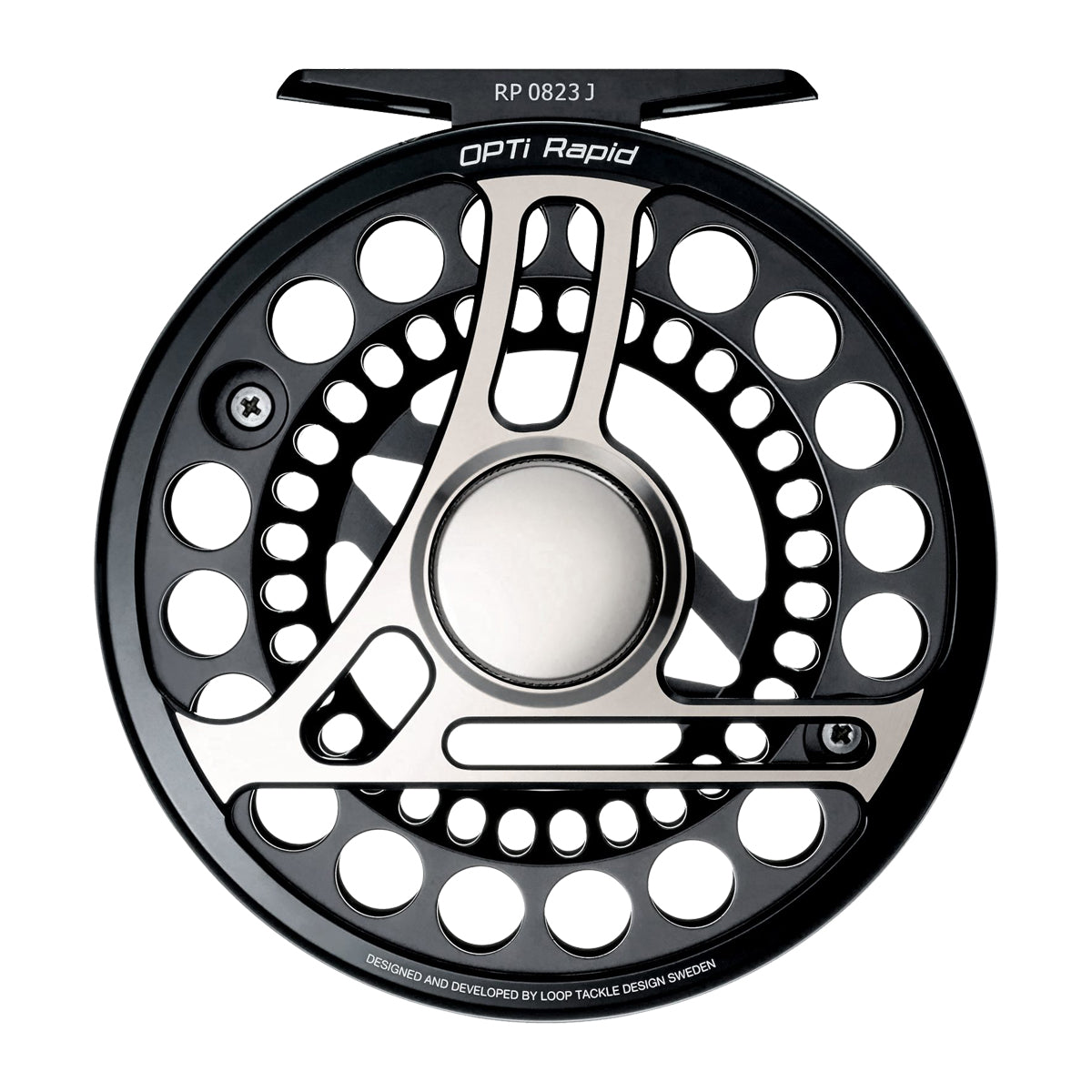 Its iconic large arbour V-shaped spool delivers faster retrieval, reduced line memory, and smooth handling when it matters most. Whether mending or recovering backing in fast water, the Opti responds with precision.