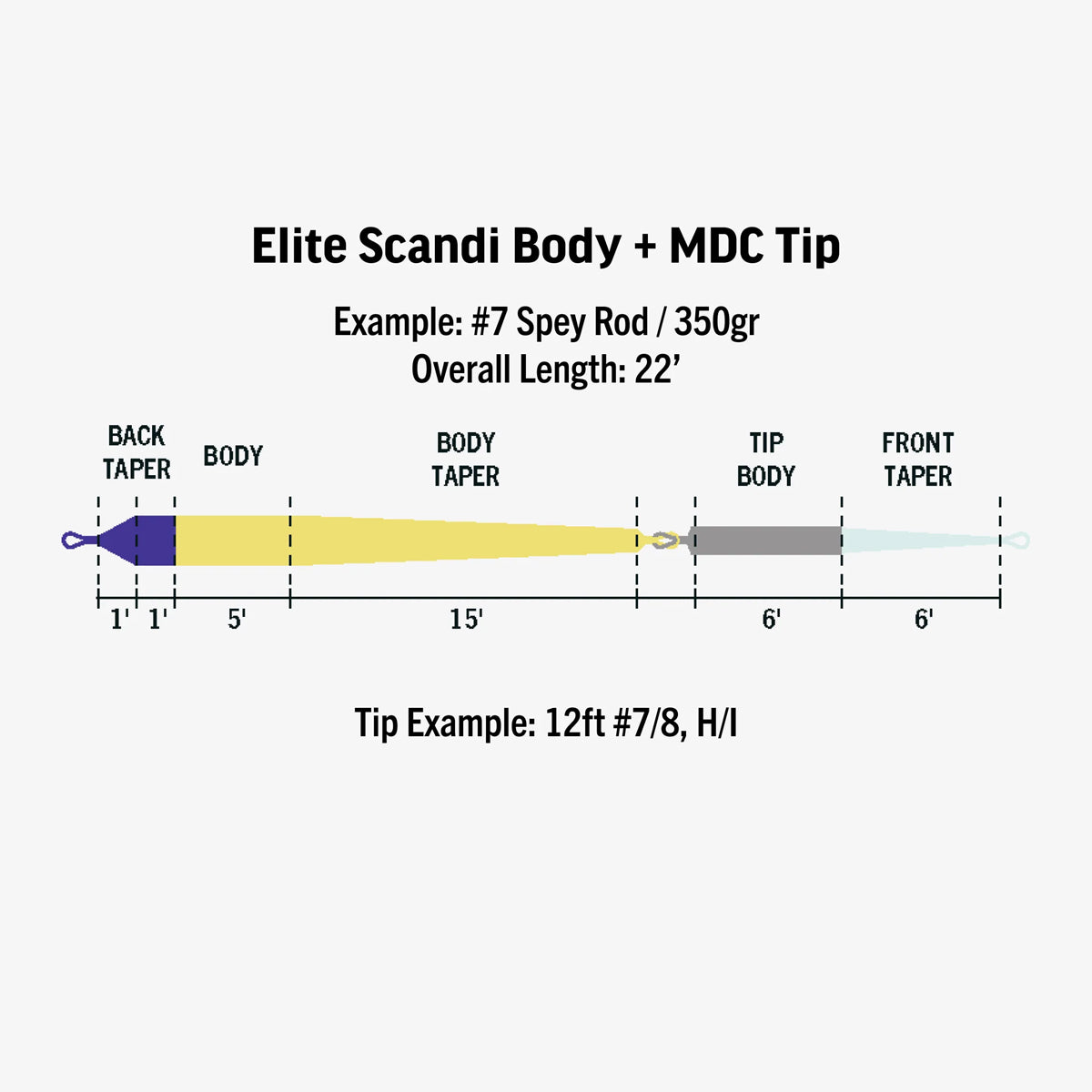 RIO's Elite Scandi MDC Kit brings together Skagit power, Scandi grace and all the code-cracking elements —  shooting line, floating body and tips — SPEY anglers need to cover a full range of swing depths and two-handed casting styles.