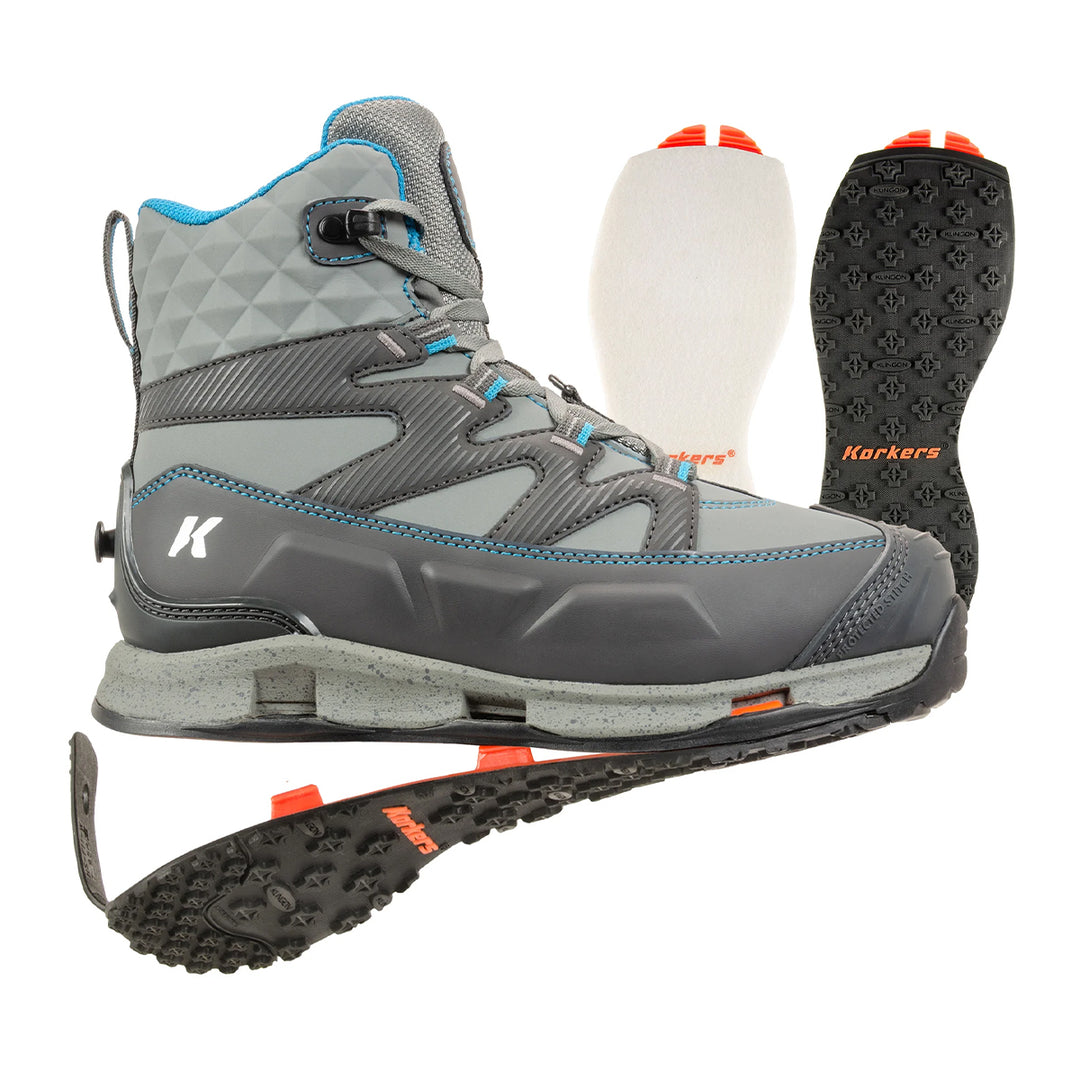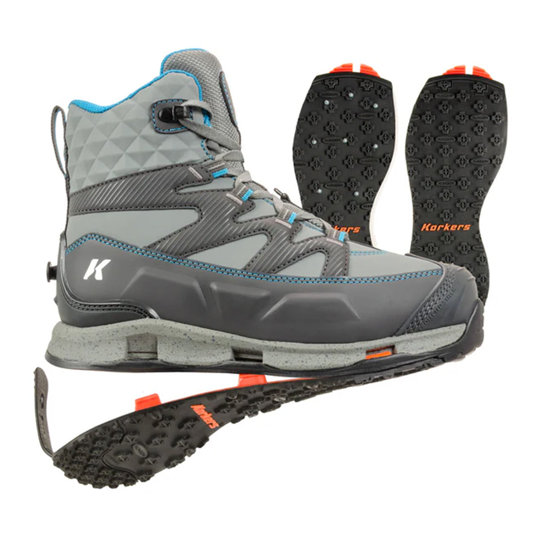 Korkers Womens Bantam Lite w/ Kling-On & Studded Kling-On Soles Grey/Aqua