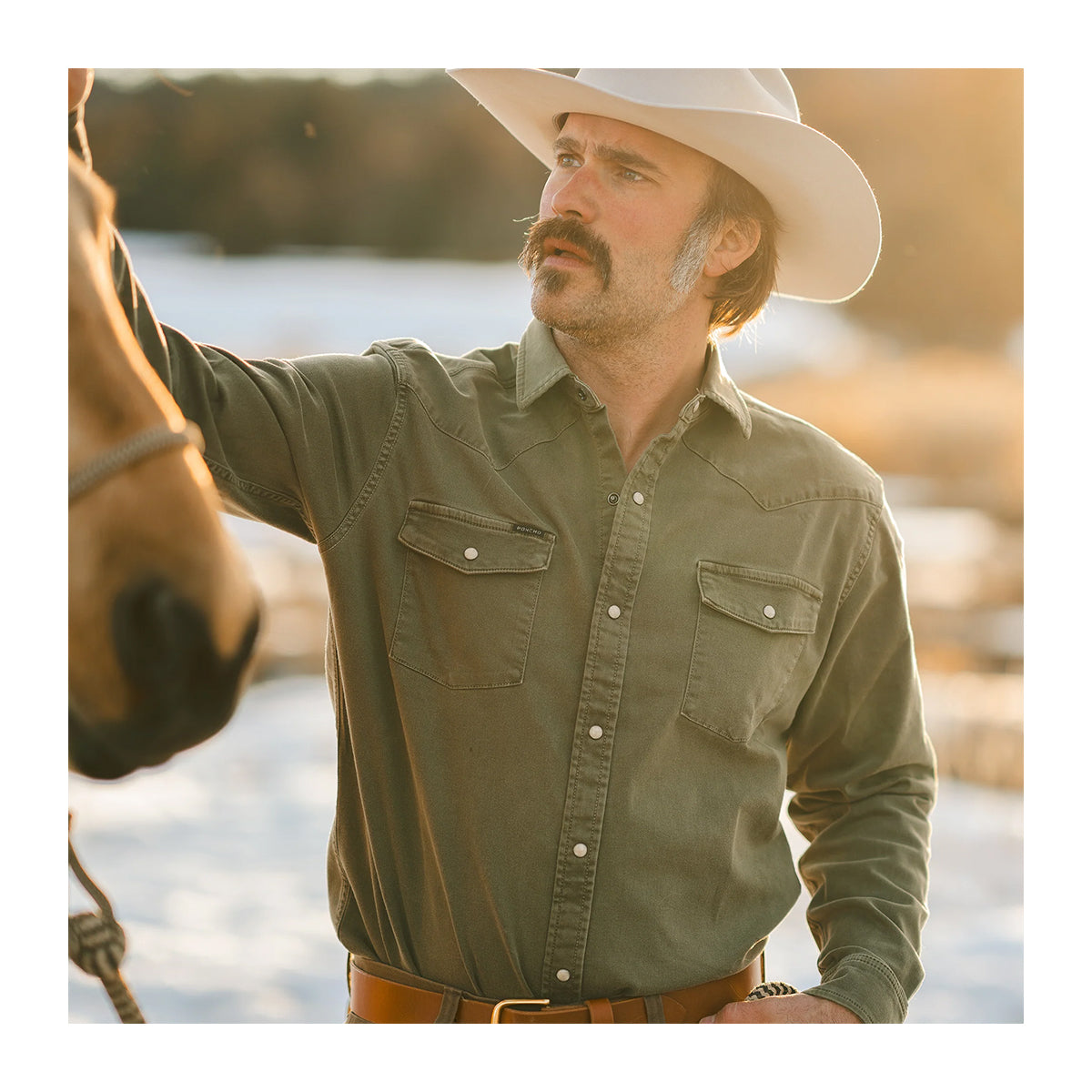 Poncho The Hidalgo Denim Western LS Shirt Regular Olive Green