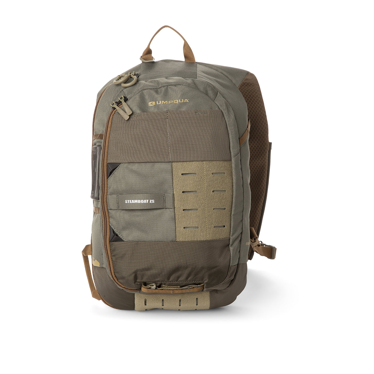 The Steamboat ZS2 sling carries like a fully-supported backpack leaving your line-of-sight and range-of-motion free up front. Perfect for spey and switch fishermen. A thumb-loop allows for easy “slinging” from back to front for quick access to essentials. A large main compartment easily holds a light rain jacket, lunch and boat box, while a secondary face pocket is great for accessory organization and smaller boxes storage.