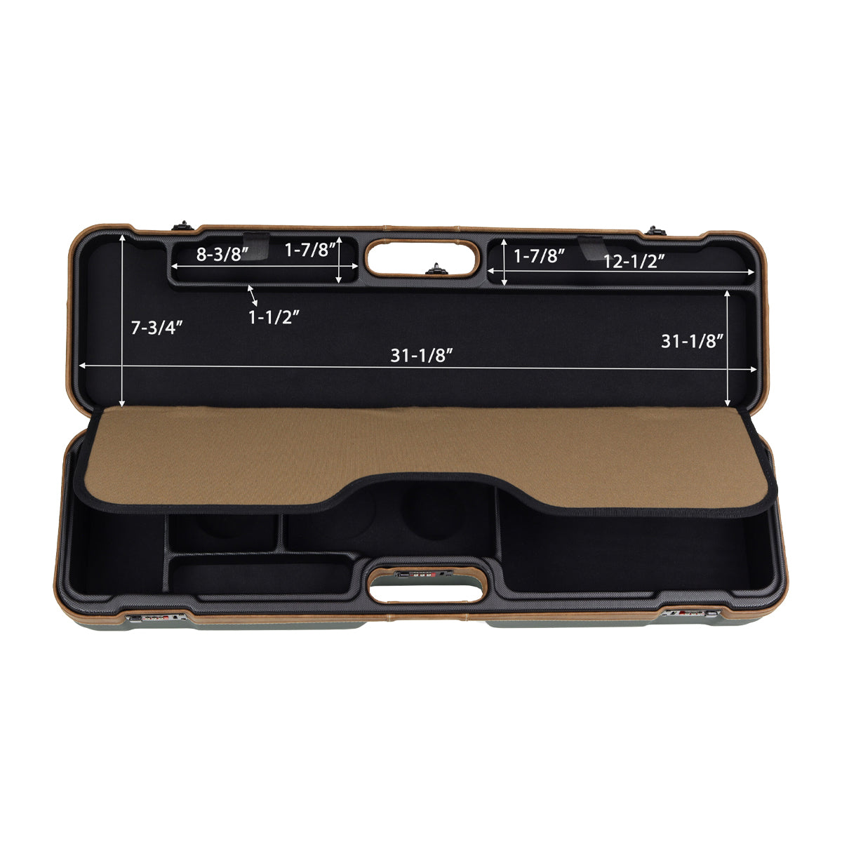 This travel case can comfortably hold up to six 4-piece 9′ 6″ fly rods, ensuring you’re fully equipped for your angling adventures. The additional space allows you to bring multiple reels, fly boxes, and all the essential fly fishing gear you need. Our expanded interior compartments provide more organized storage for your gear, making it easier than ever to carry and access everything you need.