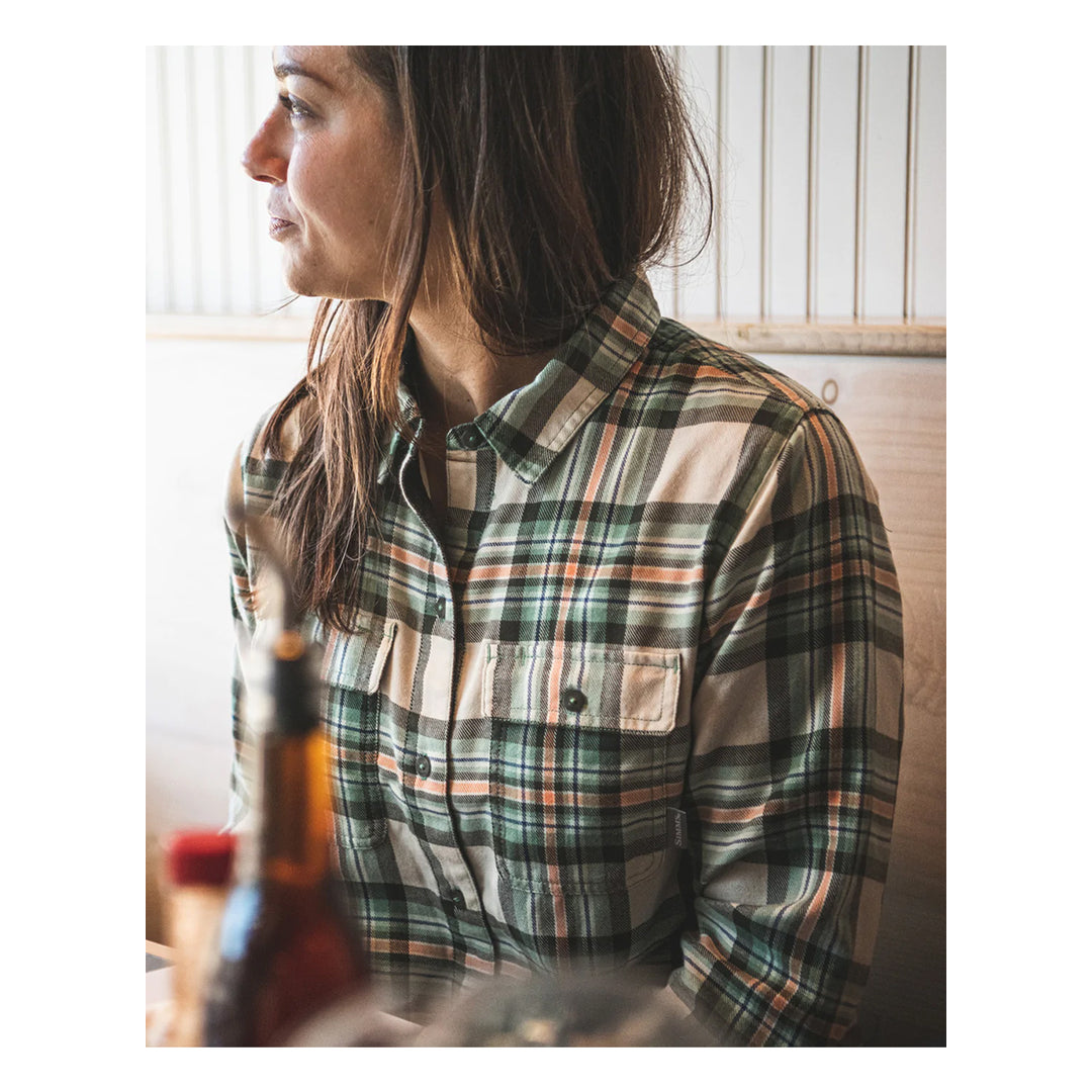 The Santee Flannel Shirt is warm and cozy with a classic silhouette, earthy, enduring tones, and a soft organic-cotton blend for time well spent in, on and off the water.