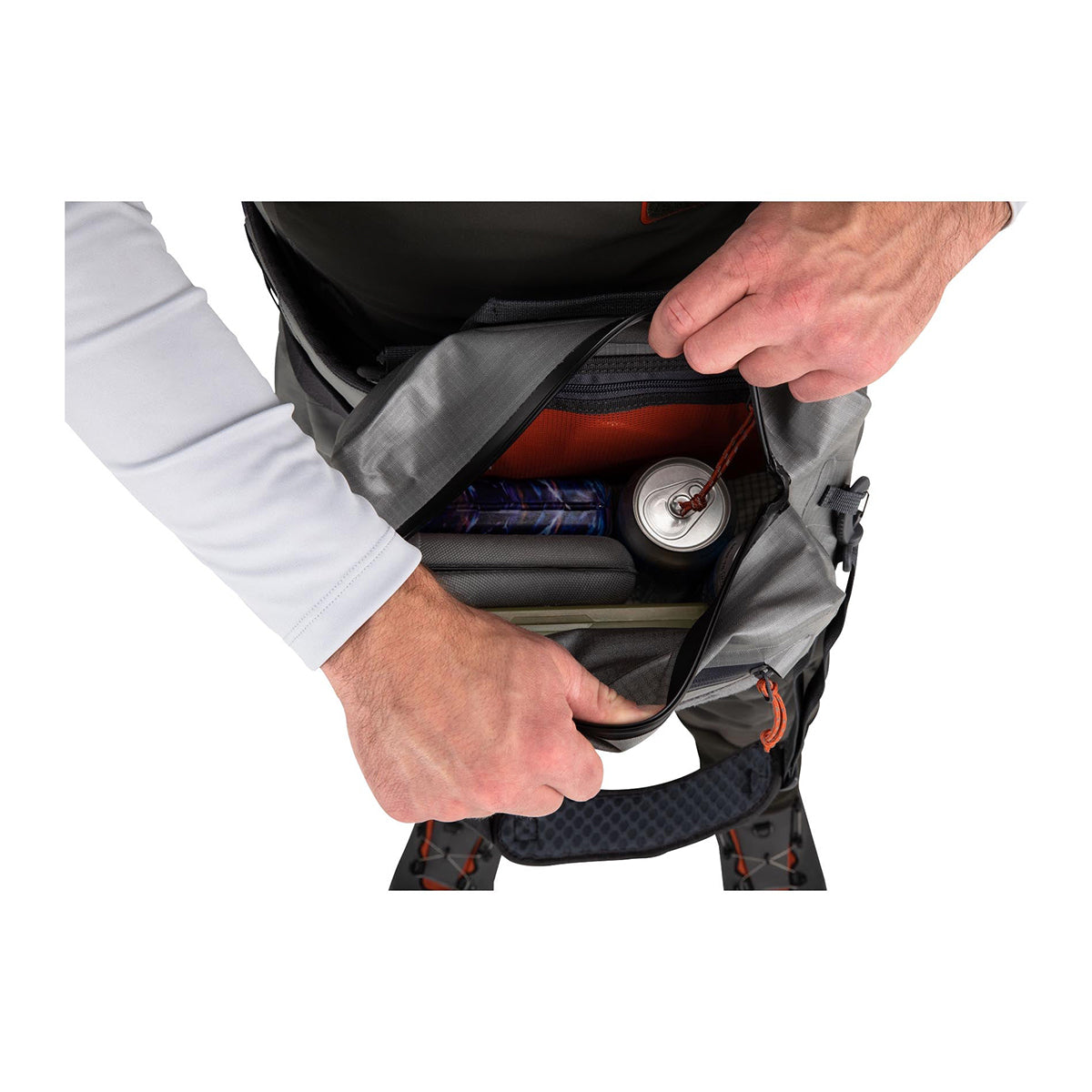 Waterproof, submersible, exceptionally rugged hip pack for carrying comfort and easy access to mission-critical fishing gear.