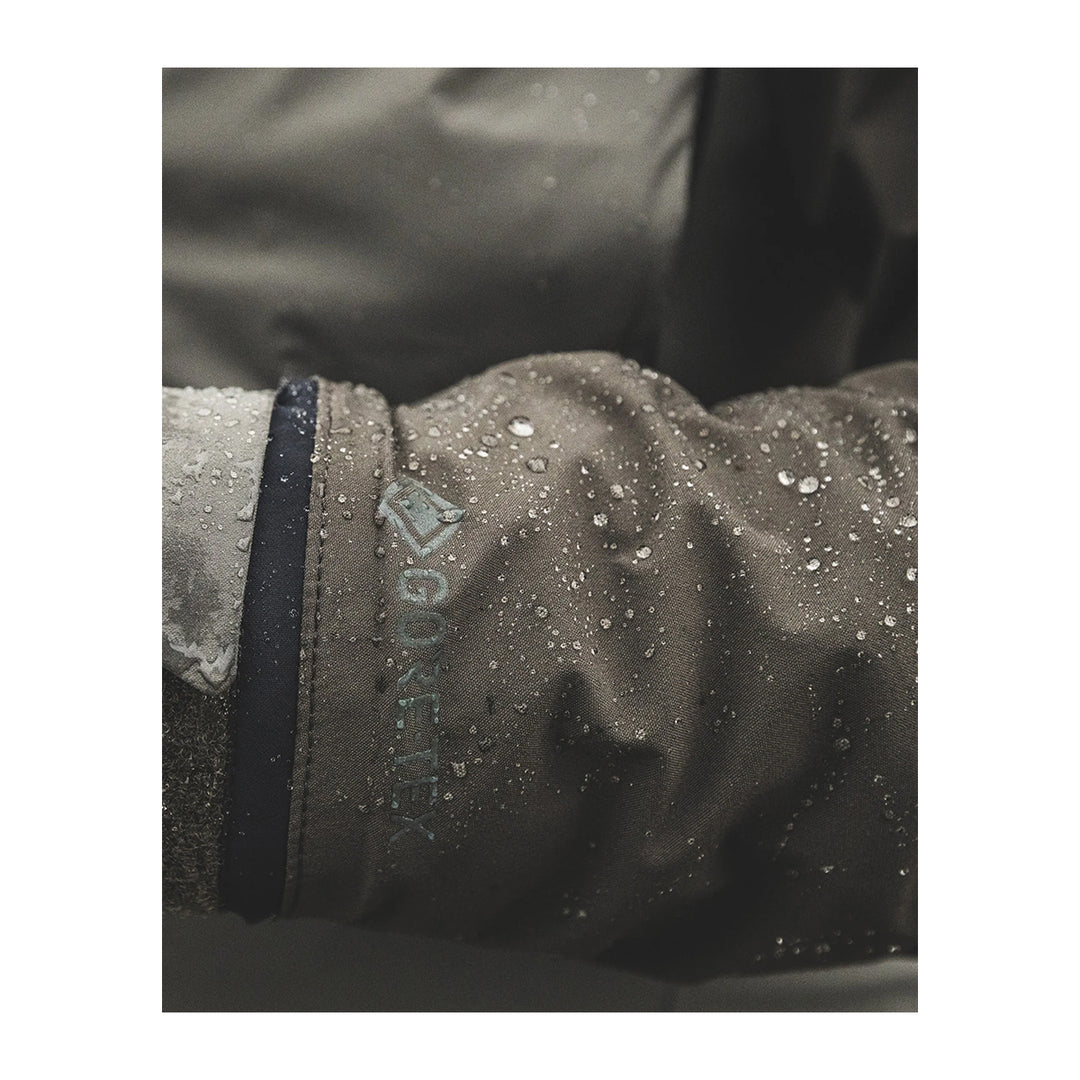 - Hood, Shoulders, Upper Body - 40D 3-layer GORE-TEX, 100% nylon with Mechanical Stretch, DWR; Backer - 100% nylon Tricot