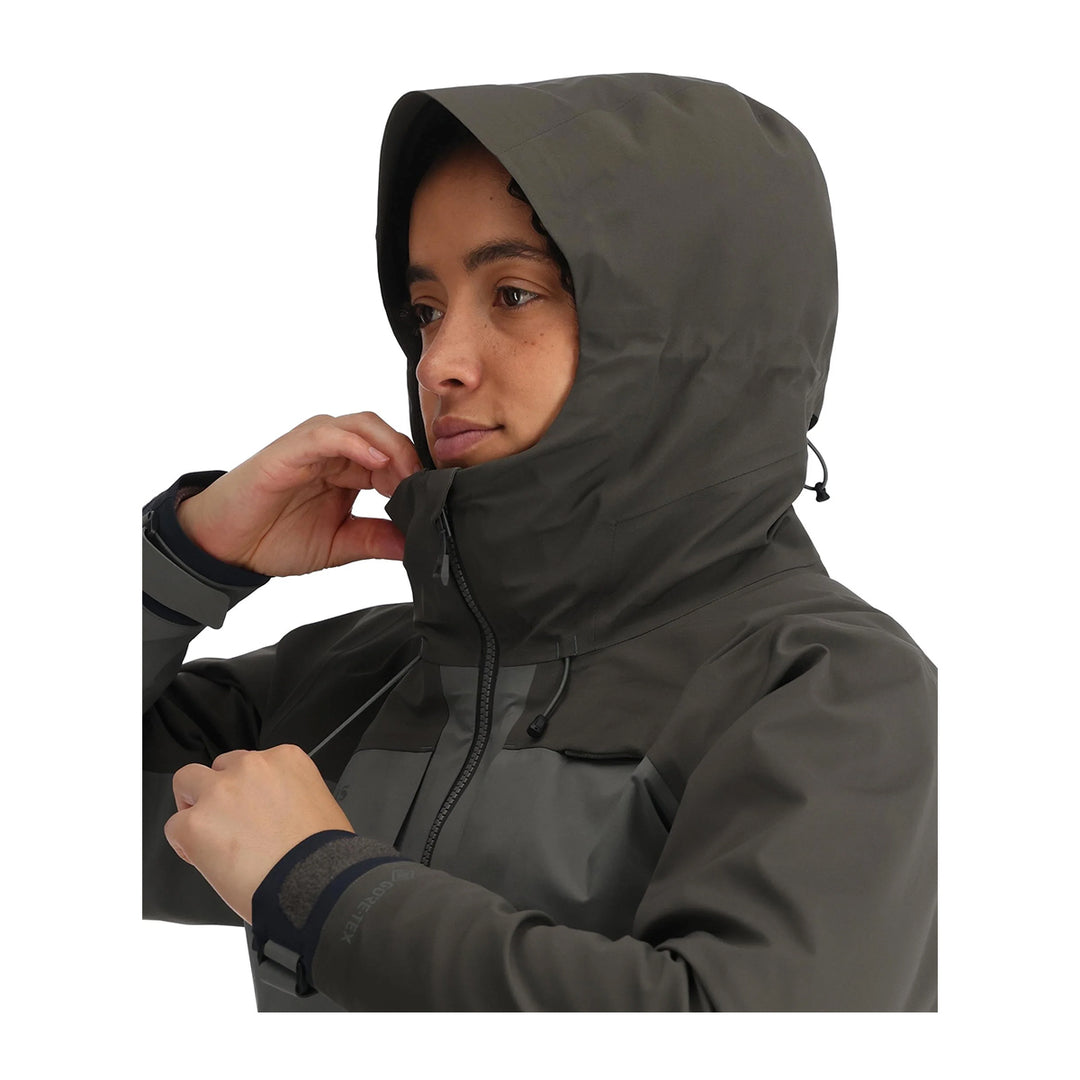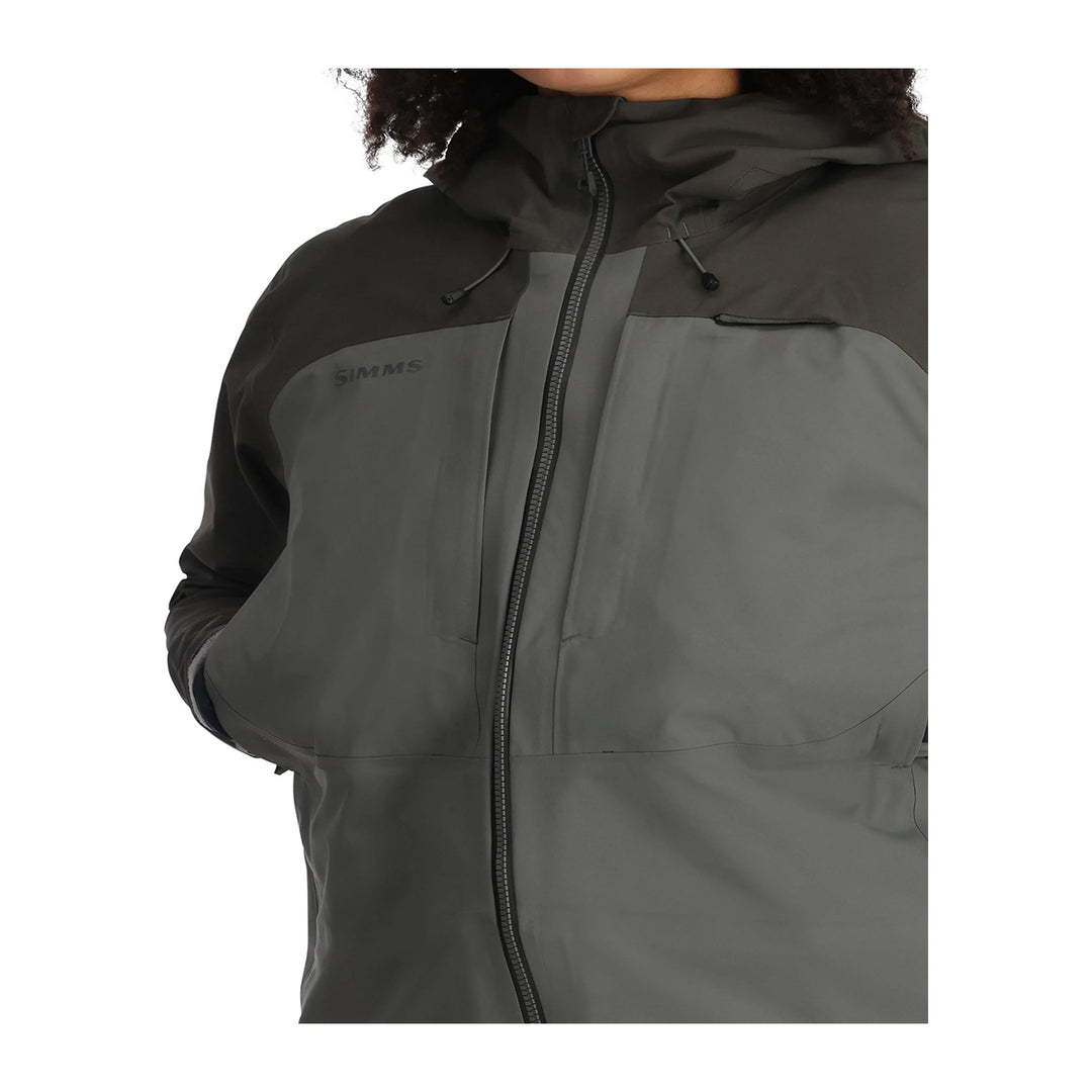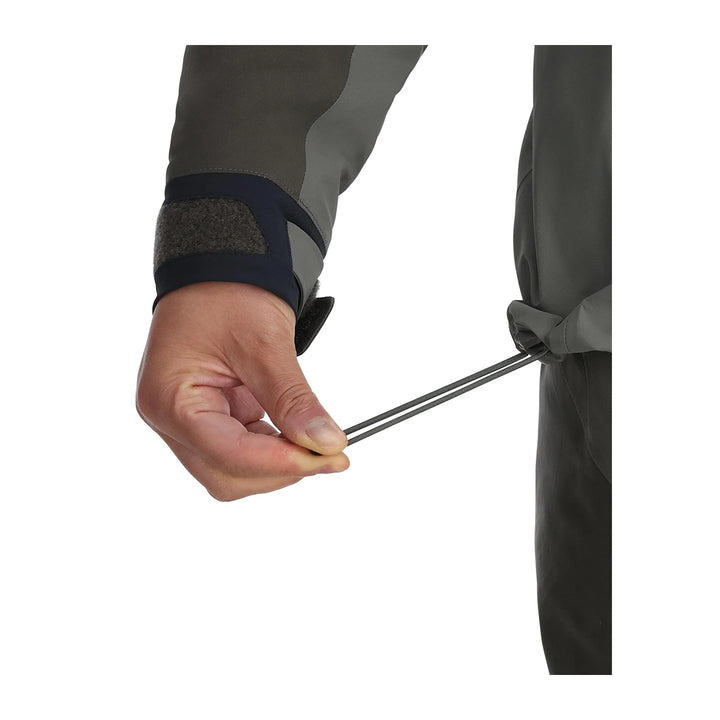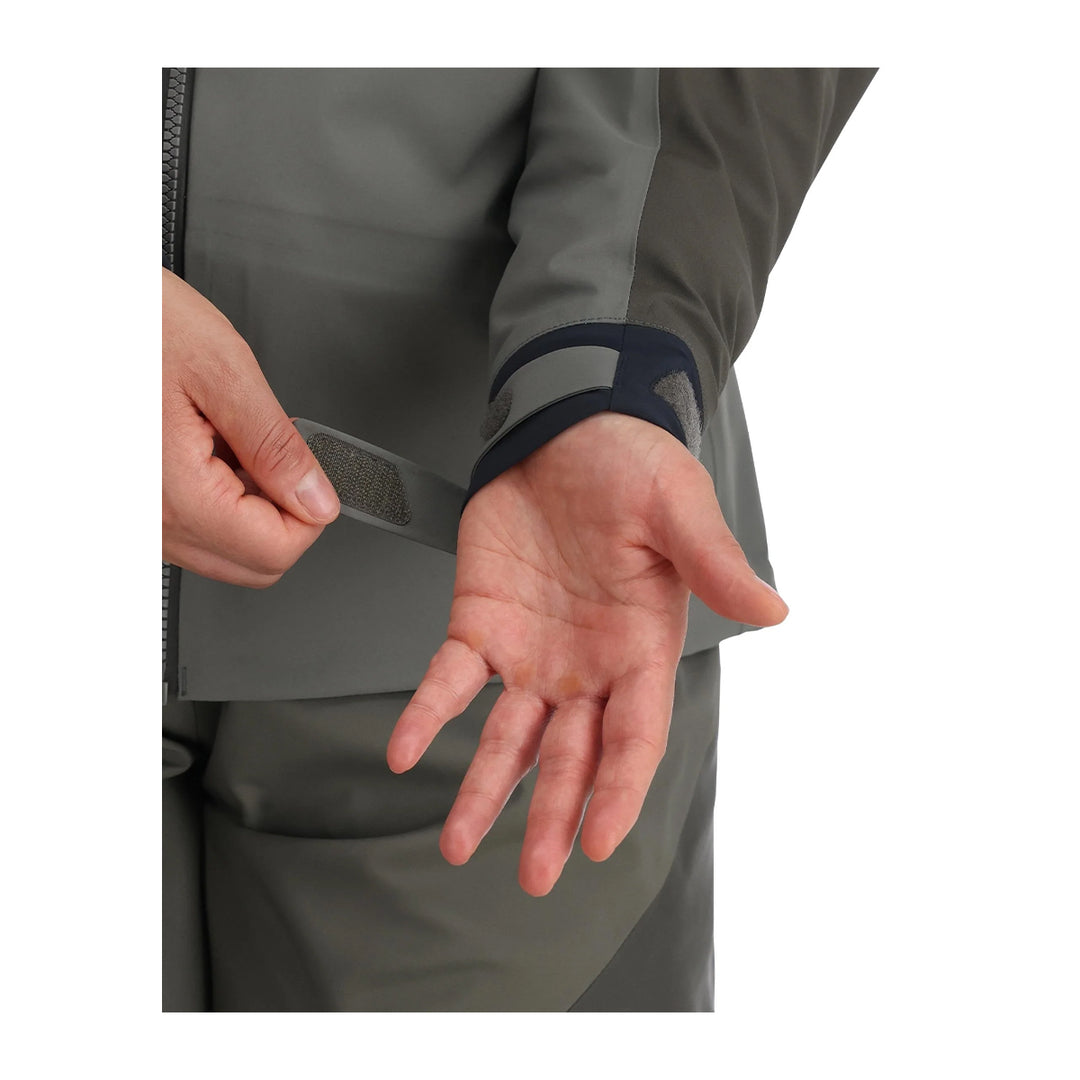 - Dual zippered handwarmer pockets are set high on the body to prevent water from entering during deep wading situations with pass-through zippers to access waders or bibs underneath