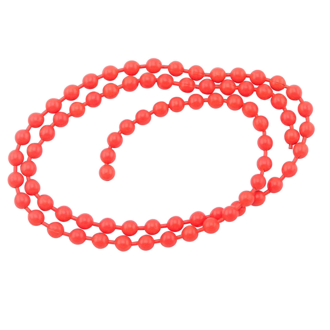 Fluorescent Bead Chain, Fish-catching colors for salmon, steelhead or bass flies. The bead size is approximately 2.5mm. 12" length of chain, approximately 72 beads.