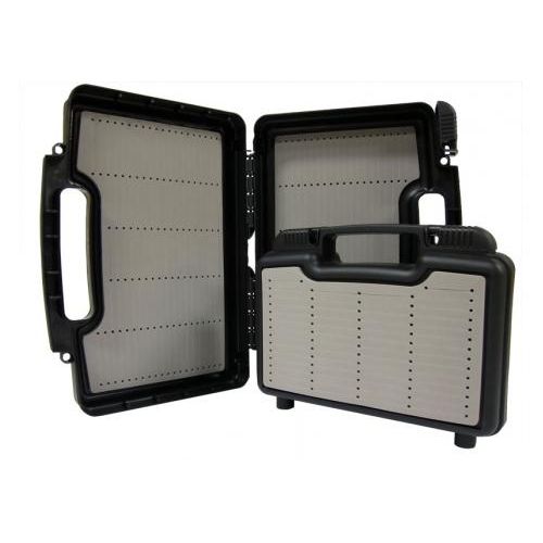 Umpqua Baby Boat Box, The perfect solution for big fly storage. Each box features slotted foam internally on the top and bottom lid, and unlike other boxes on the market, one external slotted foam sheet for easy drying, organizing or quick access while behind the oars. The thick durable foam features fly placement guides to easily identify where the slots are located. Umpqua Boat Boxes are gasketed, completely bombproof, water and airtight. They’ll save the cost of the box in just fewer rusted flies. Each inside wall and the lid have slotted foam pads ideal for poppers, streamers, and large flies. Also available with a capacity increasing swing leaf at $54.95.