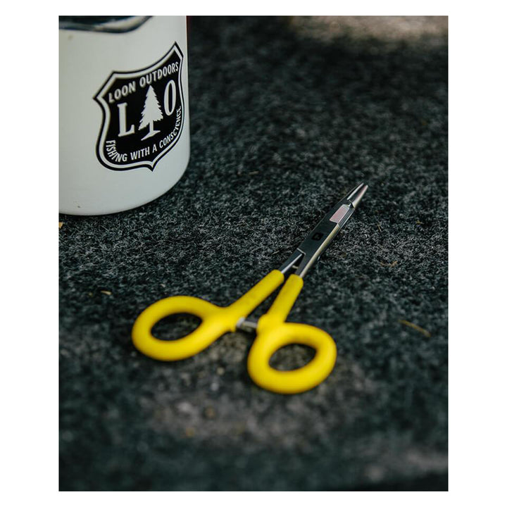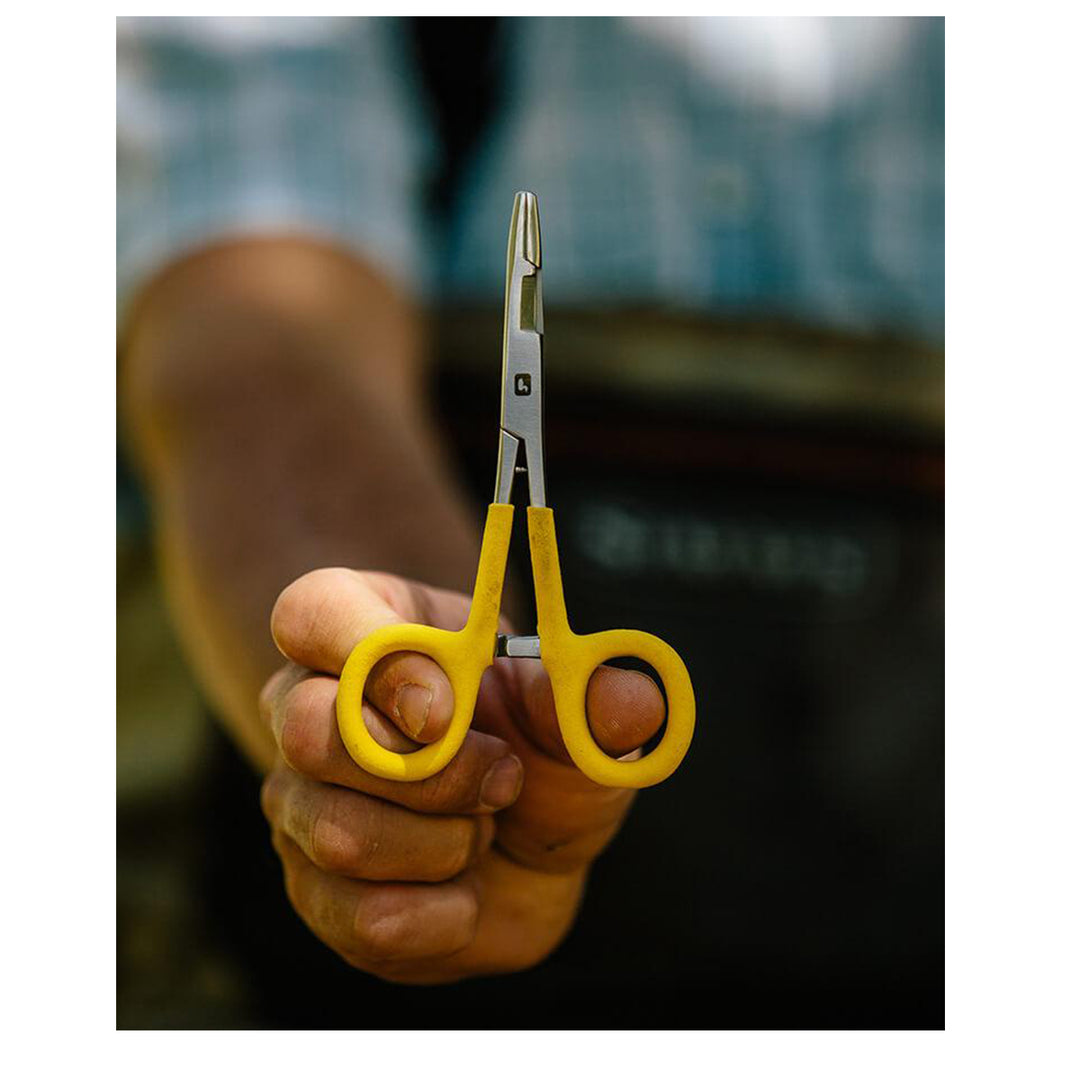 Loon Classic Scissor Forceps, Large, durable hemostats equipped with a cutting edge to maximize versatility. They have iconic Loon yellow comfy grip handles that improve grip, even when wet.