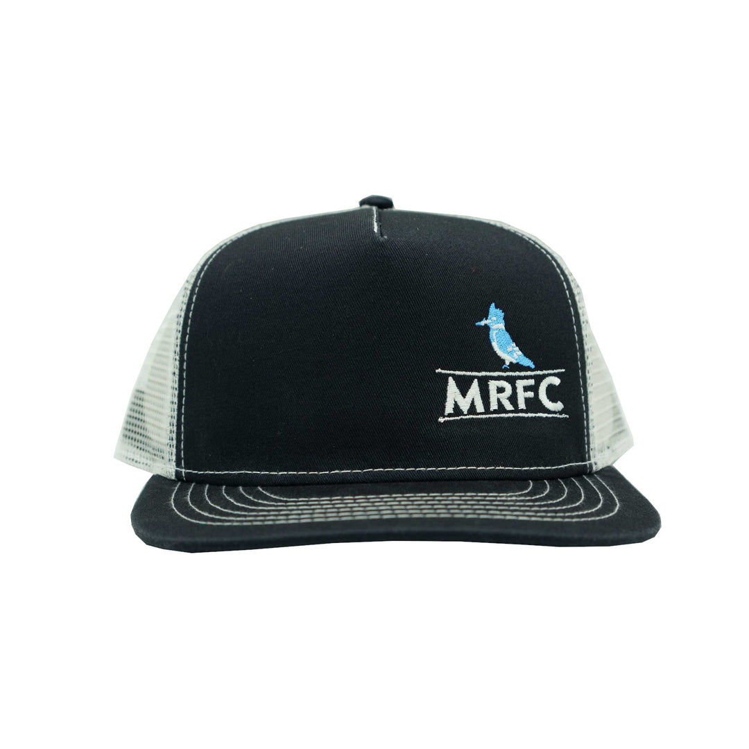 MRFC Logo Kingfisher Smitty Trucker Dark Grey/Natural, The Ouray Smitty Cap is made of 100% cotton twill front with 100% polyester mesh back which gives the great comfort and durability. Features of 5 panel, structured, fashionable flat brim, Padded sweat band for extra comfort, convenient plastic snap closure.