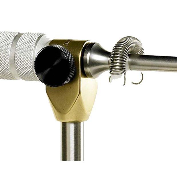 A material clip is a must to any rotary vise. It allows you to keep the tying material away from the front of the hook while working on the fly. Vise not included.