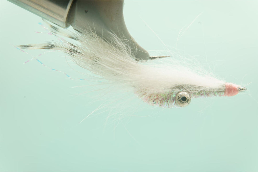 The Big Bone Daddy is a realistic shrimpy pattern that lands softly on the surface and suspends in the water column. The bead chain eyes are set back about 3/4 of the way to the bend of the hook. Bunny fur hides the hook gap and badger tips make the antennae. Great fly for flats and shallow water.