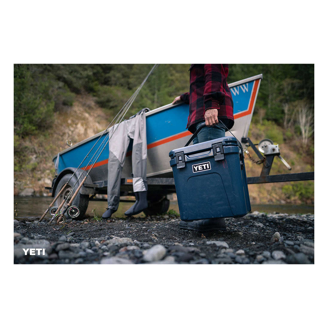 The Roadie® 24 Hard Cooler is a fresh take on a tried-and-true YETI favorite. It’s 10% lighter weight, holds 20% more, and even performs 30% better thermally than its legendary predecessor. Plus, we built it tall enough to accommodate critical bottles of wine but slim enough to squeeze behind the driver’s or passenger’s seat of a car. Now that’s what we call a road trip buddy. And hey, this guy is compatible with our Tie-Down kit, which means you can also transport this cooler on your boat, truck bed, or trailer —no problem.