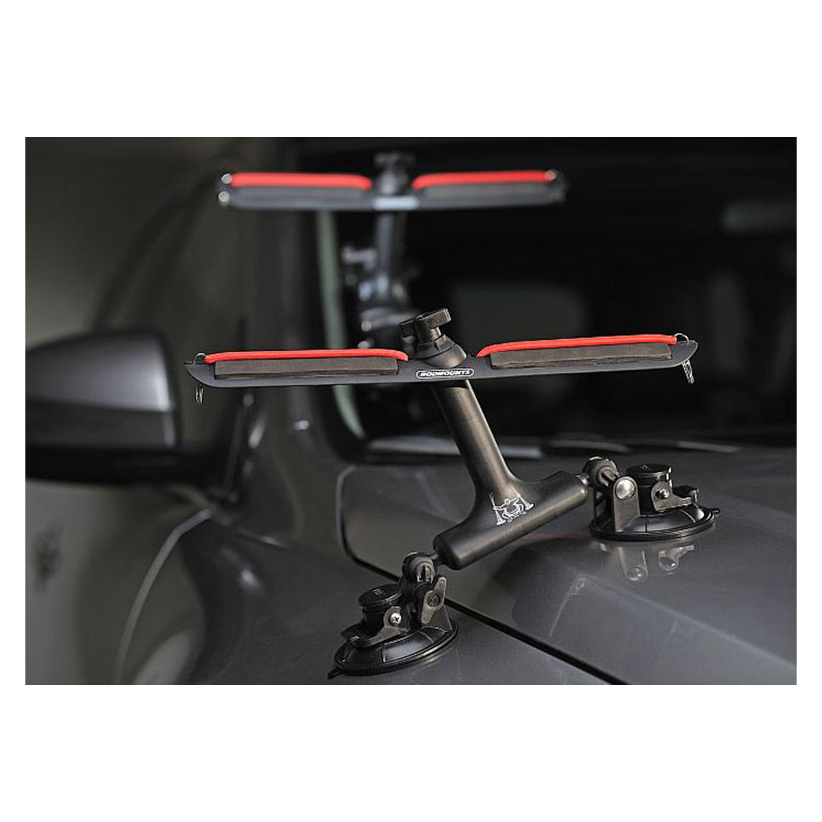 - Windshield mounting allows for easy use without standing on the doorsill to reach the roof.