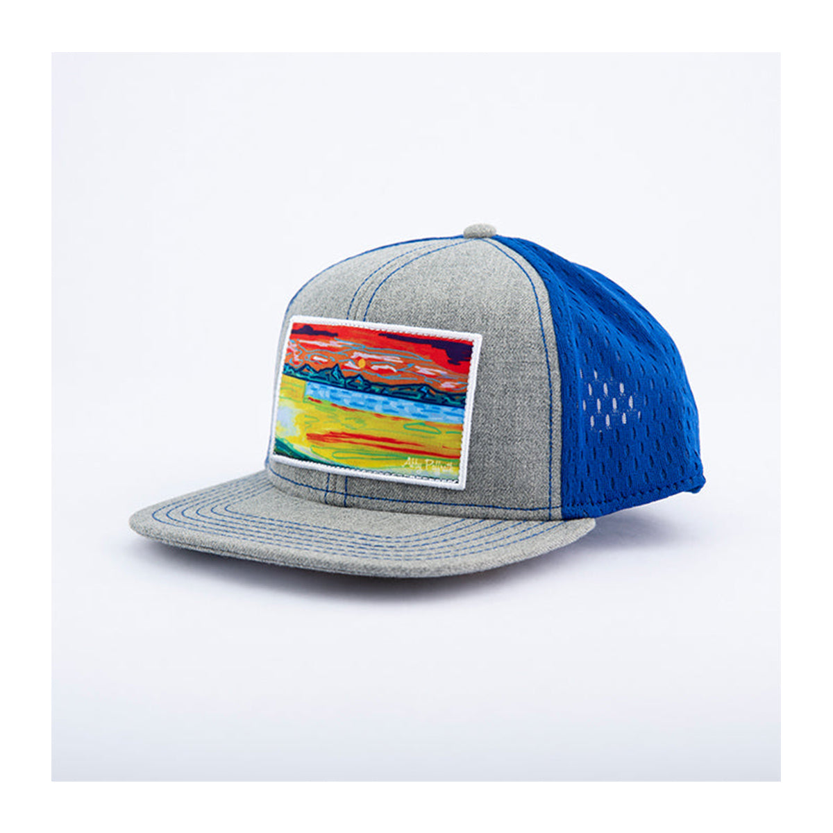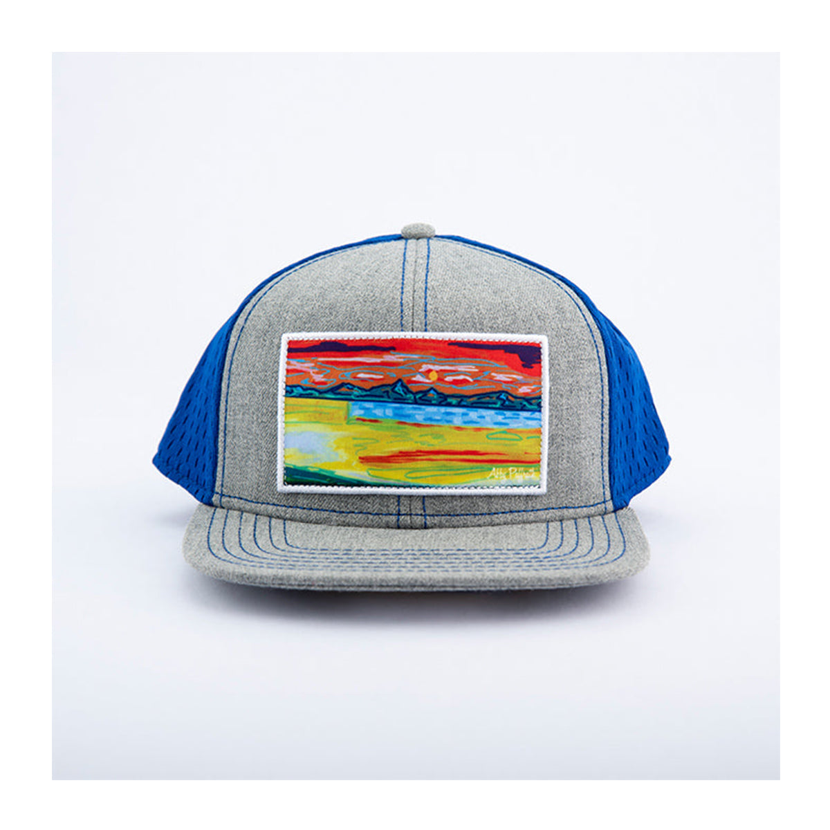 Description: Flat Bill Trucker with Soft Blue Mesh & Patch | Art: Wetlands