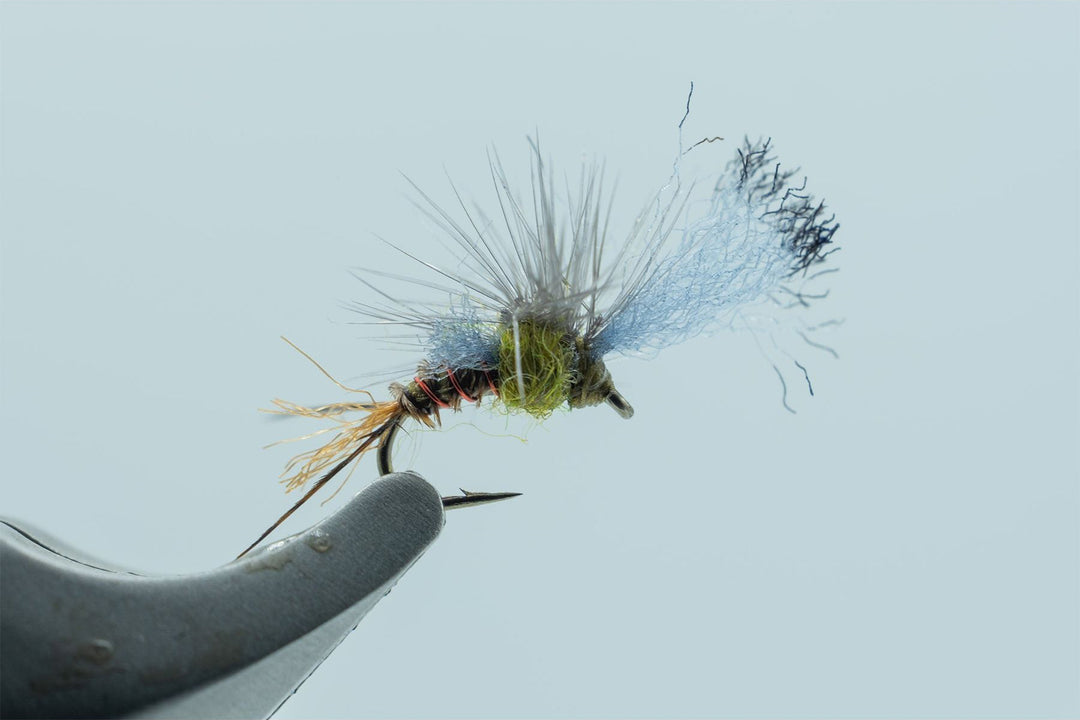 Hands down one of the best mayfly emergers in the game, the Film Critic shines on technical waters, especially spring creeks. It represents a hatching mayfly at its most vulnerable stage, giving trout an easy meal. Tied on a scud hook for added realism, with a tail that looks identical to an empty body casing as the insect emerges. A segmented body and forward-facing poly wing provide an accurate silhouette, and the top hackle of the thorax keeps this fly riding in the surface film.