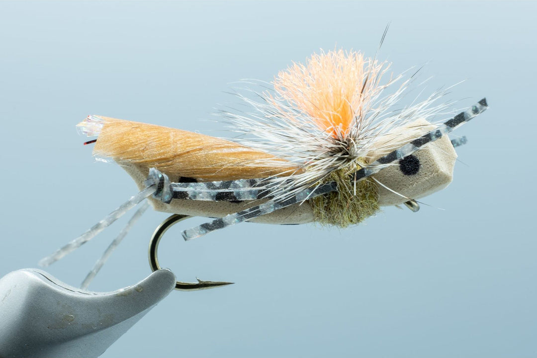 Frank as he's known in certain watersheds is a blockheaded foam grasshopper imitation, tied with silicone legs, a wing and a parachute post, Frank can easily tow your dropper as well.