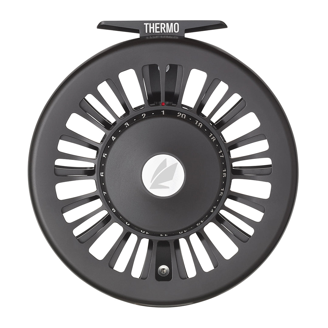 Starting with a new ultra-robust SCS drag package specifically built and tuned for the extreme, the THERMO delivers 0 to 20lbs of drag with unparalleled consistency of drag pressure throughout the entire run of the fish. No drop-off, skipping, or wear out because of overheating, the THERMO handles the extremes with ease, as the drag efficiently dissipates the heat across its fully sealed extra-large carbon brake discs. 20 easy-to-see drag settings sit atop a large-diameter drag knob that is incredibly easy to grip and adjust in the heat of a battle, while 39 detents allow for fine tuning adjustments for any leader and tippet combination.