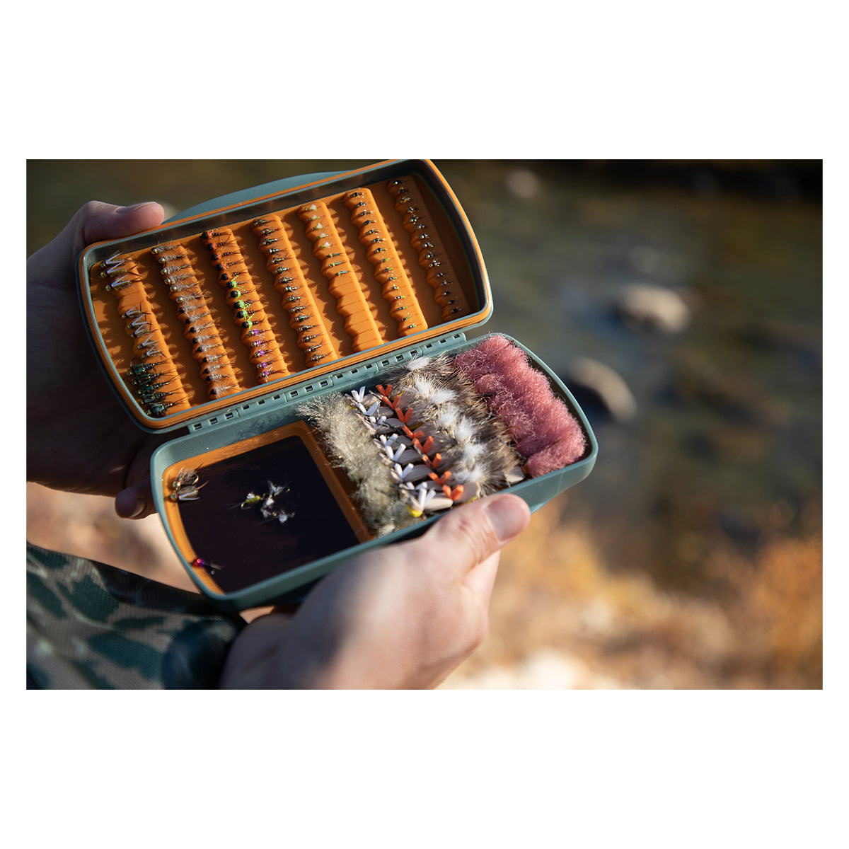 As you scramble to match the hatch and switch out flies, you’ll be glad you brought your Pescador MagPad, particularly if the day calls for a hopper-dropper setup. Built on the standard Pescador platform, this innovative box features 165 molded slits for best-in-class security and our signature MagPad for quick access and storage. This latchless, waterproof system consists of 100% recycled plastic for a highly durable box with a more responsible footprint.