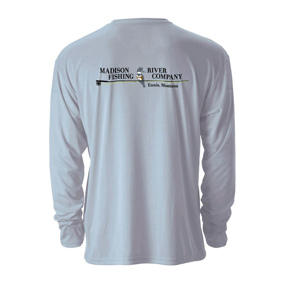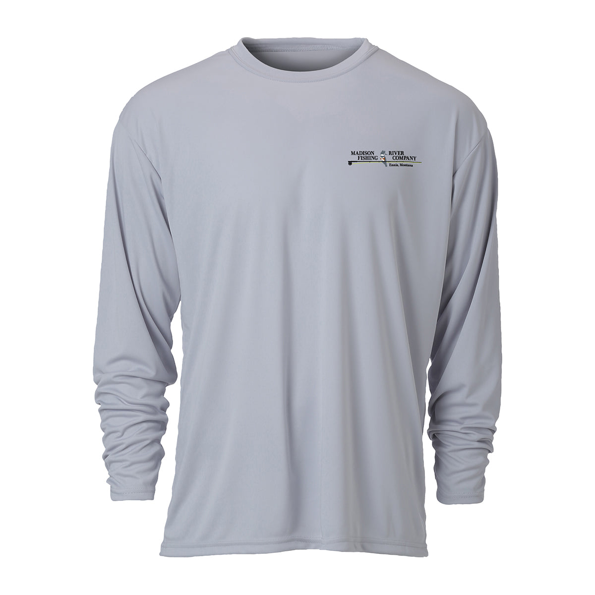 MRFC Logo Performance L/S T-Shirt Small Chest w/ Back Logo Silver - Madison River Fishing Company