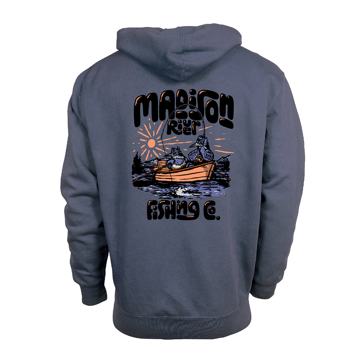 MRFC Logo River Kings Back Logo w/ Small Chest Logo Hoody Washed Navy - Madison River Fishing Company
