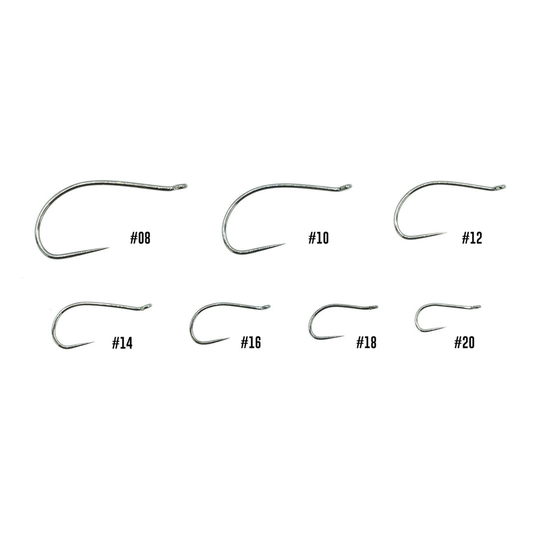 The curved shank of the XC240 gives tyers a unique option for stonefly, caddis, shrimp, emergers, and many other styles of flies. The slightly upturned eye design ensures you won’t get in your own way of the hook point when tying a new creation, while the barbless point allows for easy hooking and releasing of fish. This hook is part of our XC competition hook collection designed to give anglers and tyers an unbeatable quality in a carefully crafted selection of shapes that hook and hold fish in stealthy black nickel barbless models. Sold in packs of 25.