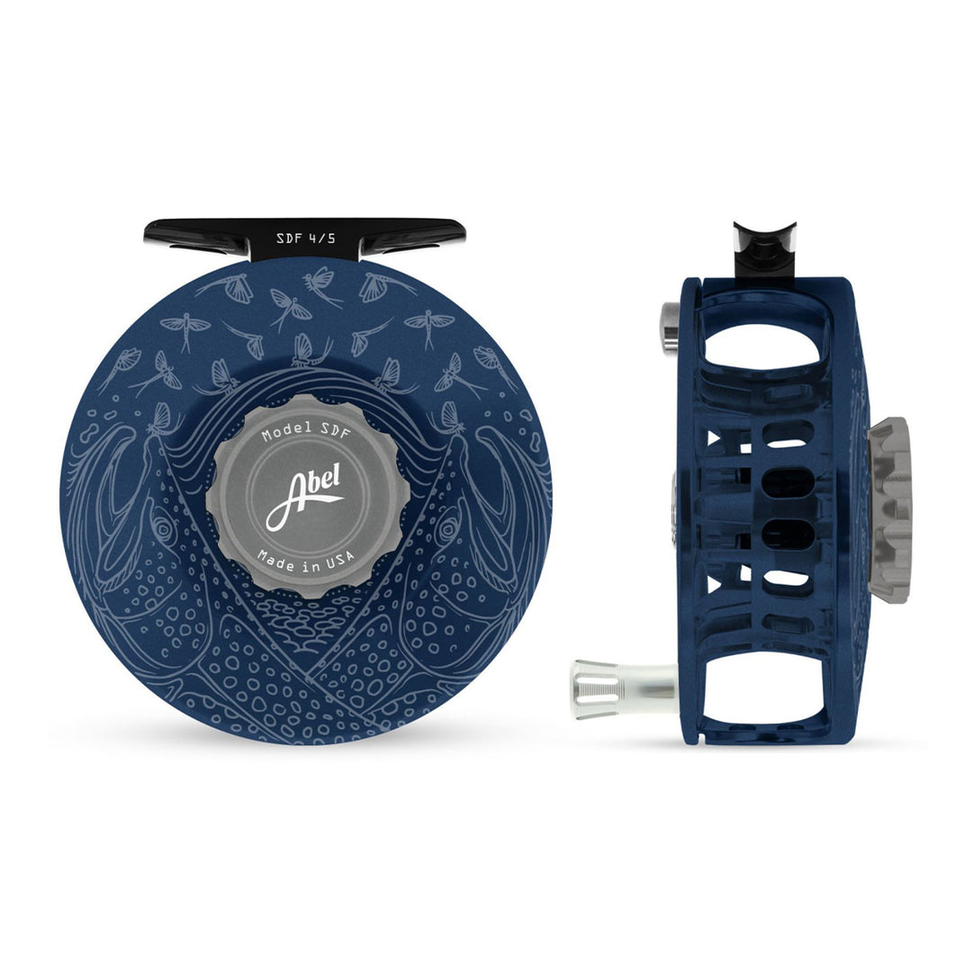 Abel SDF Solid Reel 4/5 Satin Deep Blue, Satin Platinum Drag Knob, Underwood Mayfly Flurry with Platinum Handle - Madison River Fishing Company