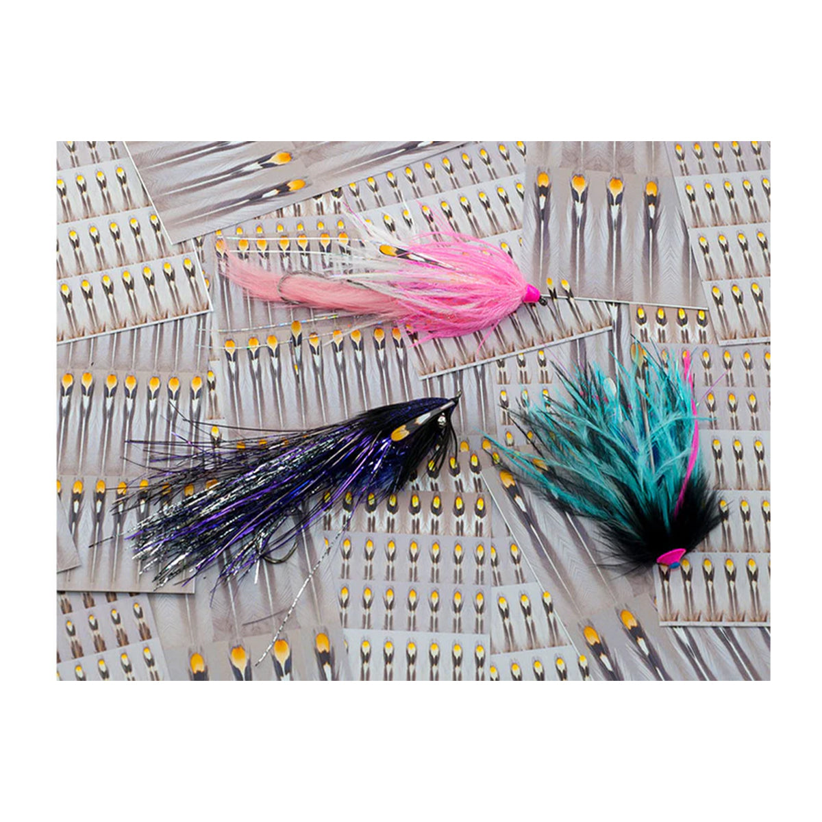 Our Un-Real Jungle Cock is like no other synthetic jungle cock on the market. It has been meticulously color corrected to bring the fly tyer the most accurate synthetic feather. The Un-Real Jungle Cock is then printed on a waterproof material that is super tough, but still has some flexibility and movement in the water. The fly tyer can use a permanent marker on the back and edges to create a natural look or a color accent. With a variety of sizes available, the choice is similar to selecting a feather from a real cape.
