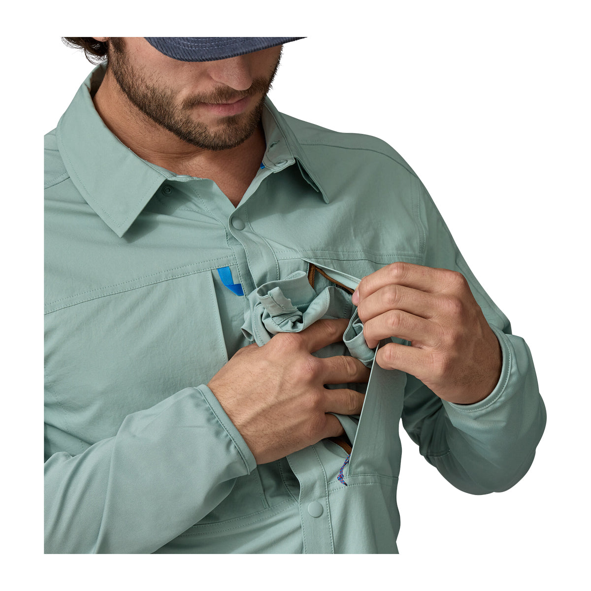 The versatile, quick-dry River Rambler Hybrid Sun Hoody pairs 40+ UPF sun protection with light, breathable, stretchy comfort. With a removable hood, integrated lens cleaner, roomy pockets, snap-down collar, hemo tab, longer hem and sleeves and HeiQ® Pure odor control, it's the all-in-one for under the sun. Made in a Fair Trade Certified™ factory.