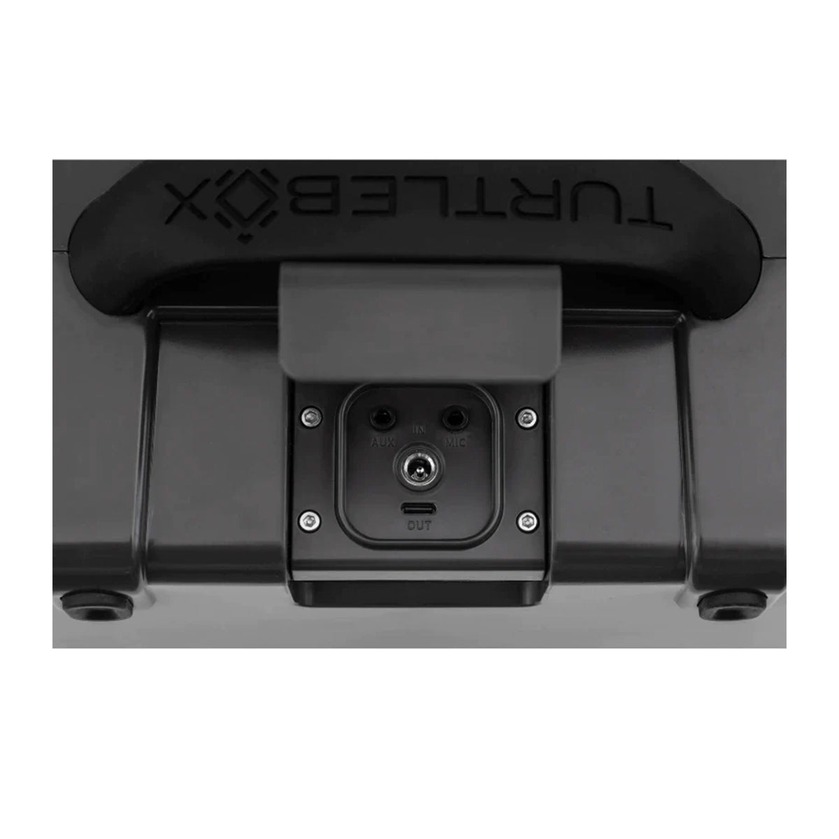 For its Big Sound, the Turtlebox is extremely portable, lightweight and compact—easily carried with one comfortable rubber handle. About the size of an old-school lunchbox and weighs about 10 lbs.