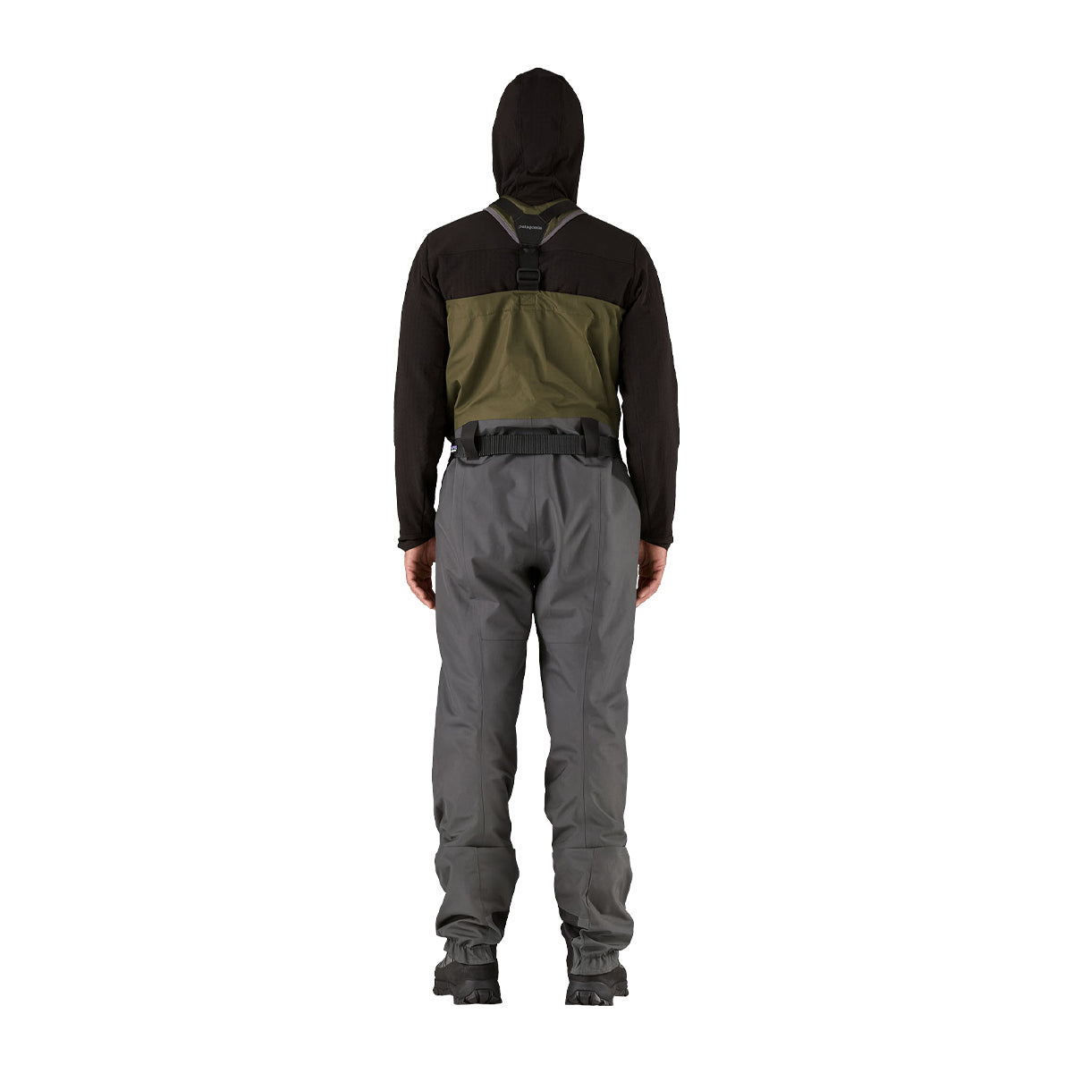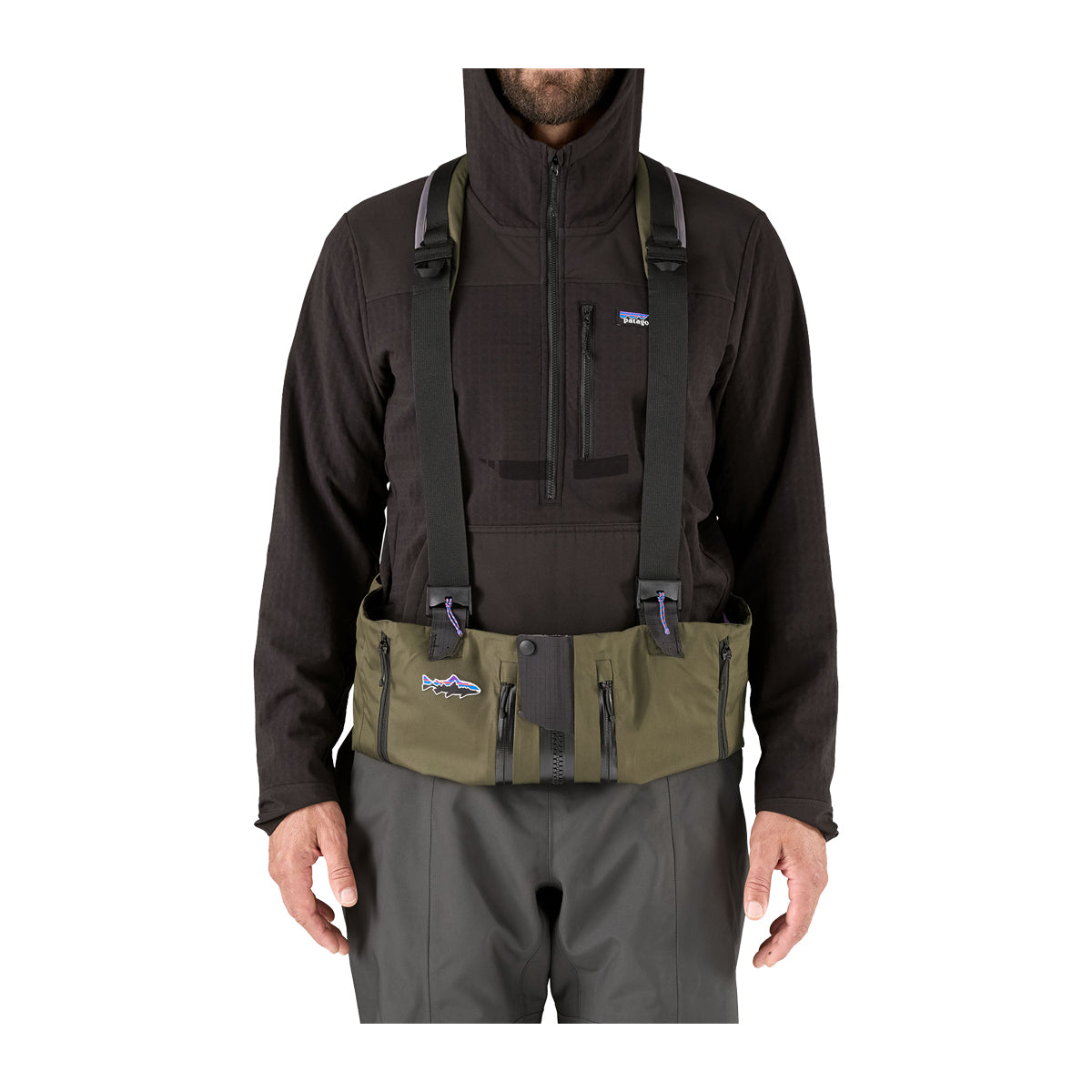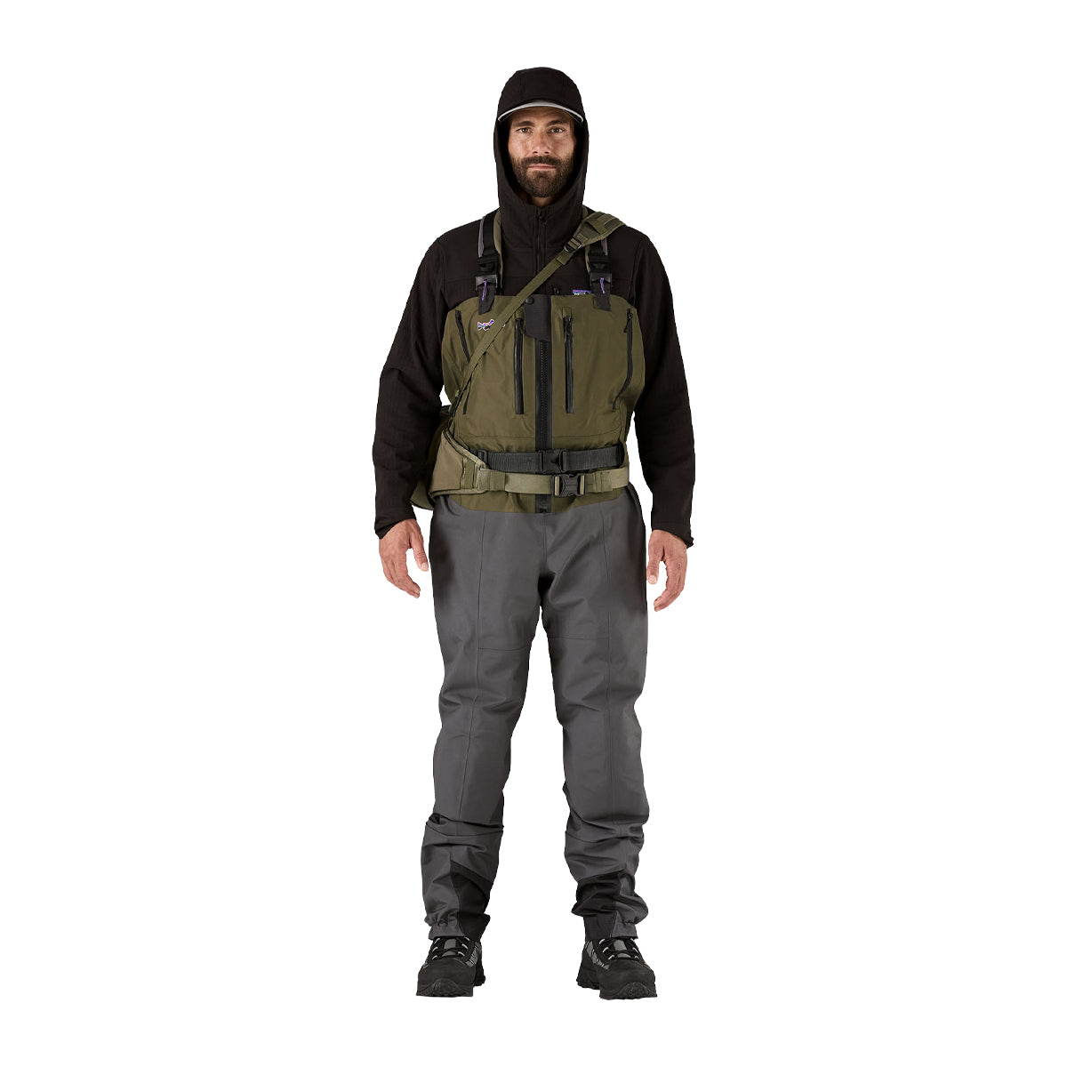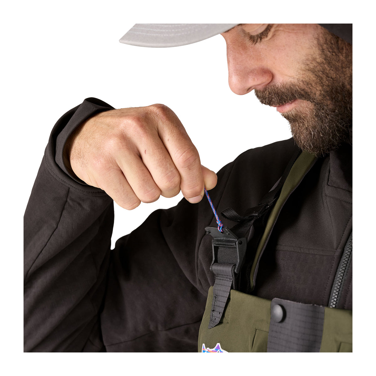 Submersible YKK® front zipper for ease while layering underneath and quick streamside relief; fully adjustable, quick-release suspenders offer easy chest- to waist-high conversion; with a top-hem drawcord and a Secure Stretch wading belt
