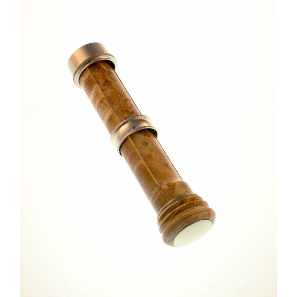 The deluxe version of our uplocking sliding band reel seat features a highly decorative turned end with beautiful indents. This is a reel seat you might consider for that special one of a kind rod. Comes complete with cork hood, sliding ring, trim ring and mushroom end cap. Eased inside edges with Bellinger's signature fine straight knurling. Spacer outside diameter is 0.660", a .375 inside diameter, and the assembled length is approx. 3.5. Available with stabilized Redwood insert.