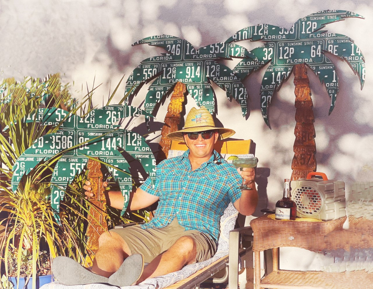 Bring the tropics to your home all year long with a large vintage palm tree. The fronds are made of limited edition green Florida plates with a trunk of antique license plates. Each piece is an original and will look similar however not exactly as the picture shown.