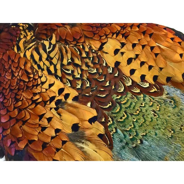 Excellant quality Full Ringneck Pheasant skin. Every feather on these grade 1 skins is used for tying flies. The church window back feathers are used for bug wings and spent wings. Rump feathers make great quill bodies and wet fly hackle, and deep metallic body feathers for natural color wet fly hackle.