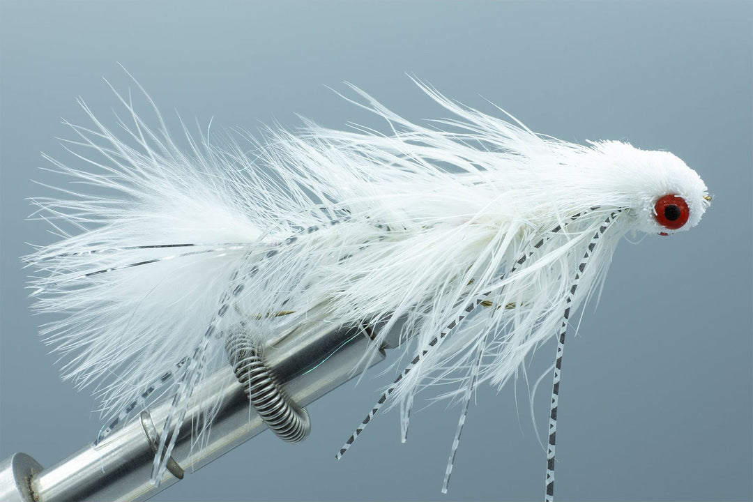 Kelly Galloup's Sex Dungeon is arguably the fishiest and definitely the biggest selling of all the articulated streamers. Not only does it have a unique name, it catches big fish. The lead eyes with the deer hair head and collar give this fly an action all it's own. The head pushes water around onto the tail making it kick and swim. The deer hair also adds the element of bouyancy, which creates a fluttering jigging effect when stripped. When the fish are eating the big stuff, the Sex Dungeon should be on the end of your line.