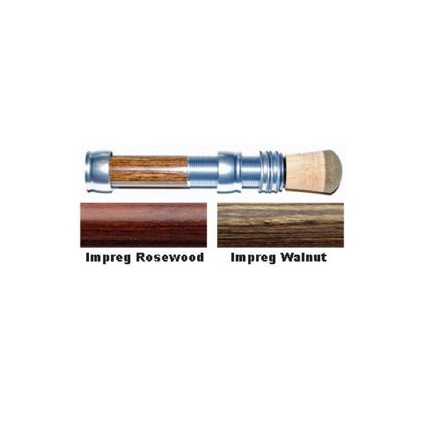 Recommended for #10-14 line weight rods. Diameter: 0.845" - Length: 5.150". Available with Impregnated Walnut or Impregnated Rosewood color inserts in black or pewter anodized finish.